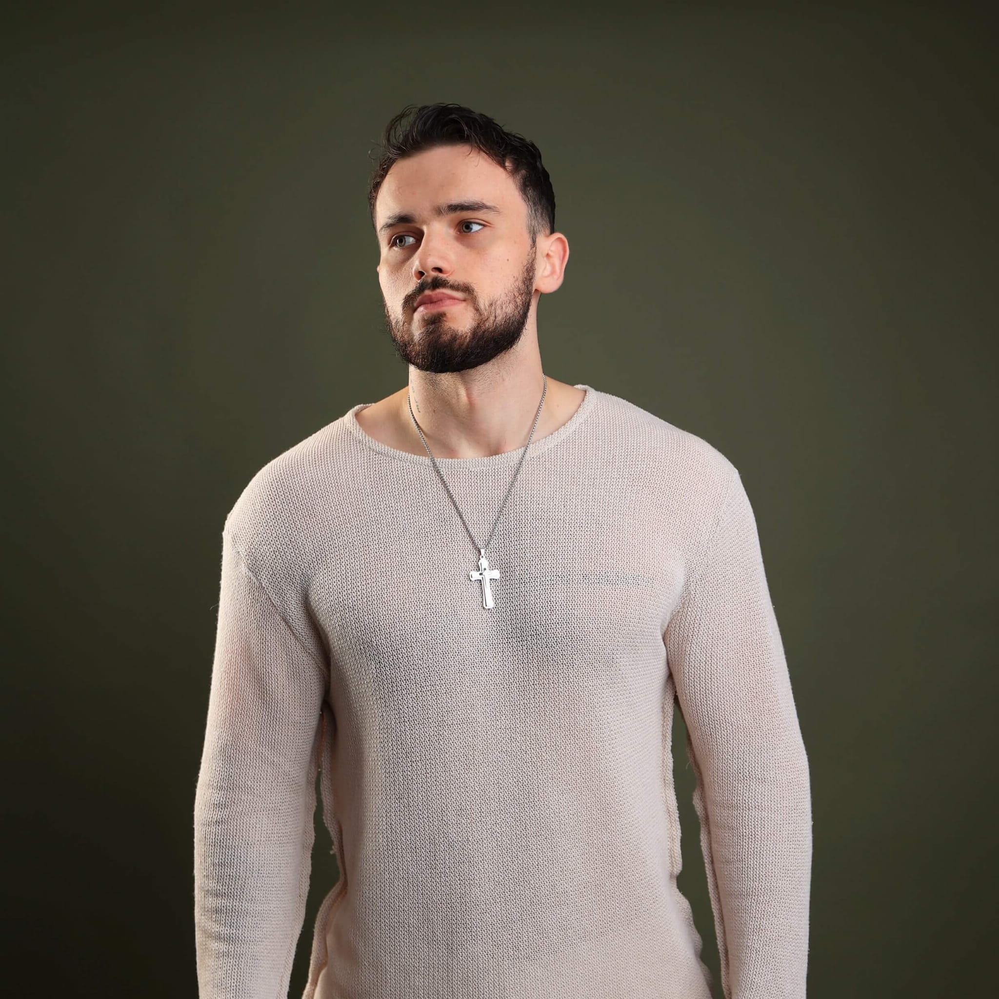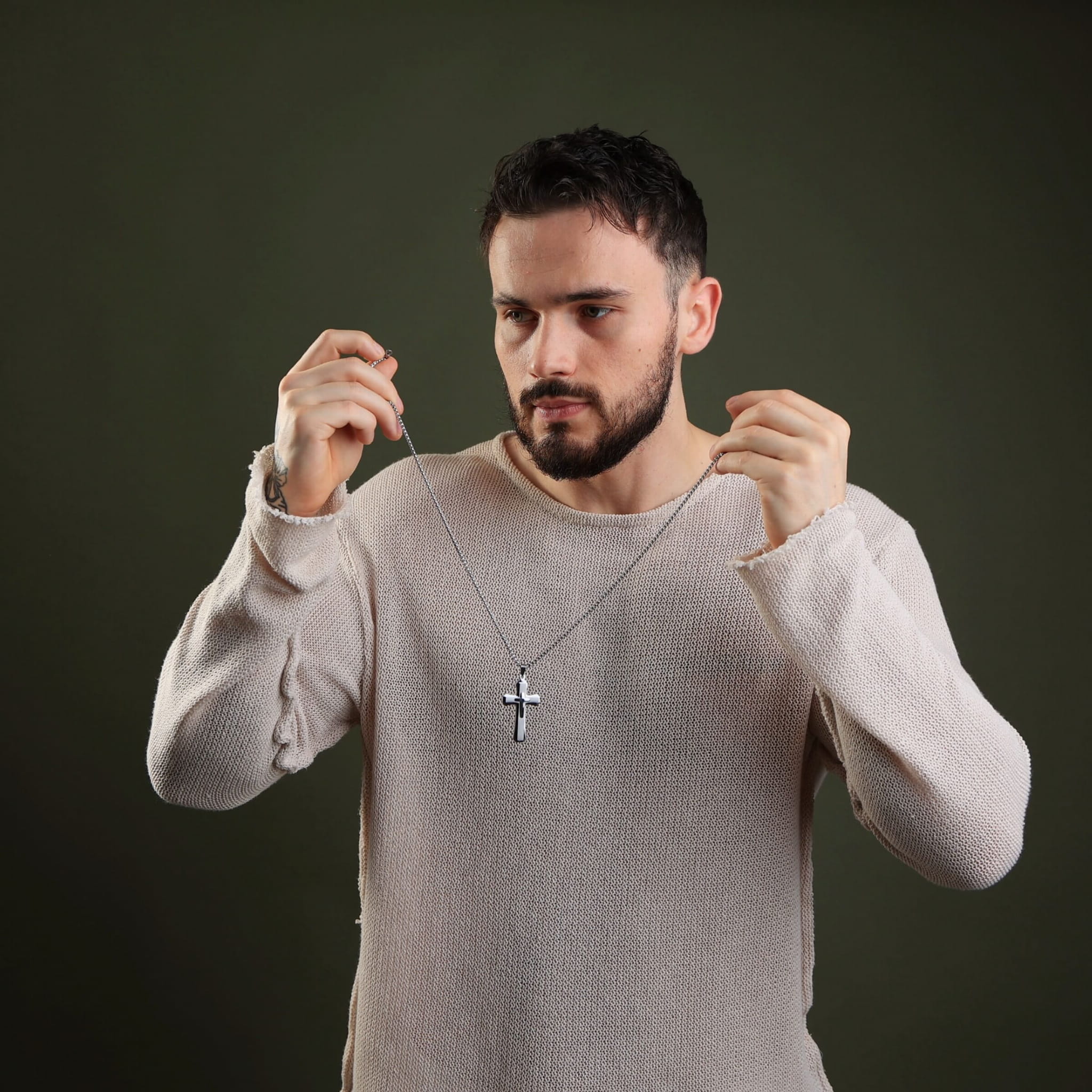 Krzyż – ponadczasowy symbol, który przez wieki dawał ludziom siłę i nadzieję. W tym projekcie jego forma została odświeżona i osadzona w chłodnej elegancji stali szlachetnej, nadając mu nowoczesnego charakteru.