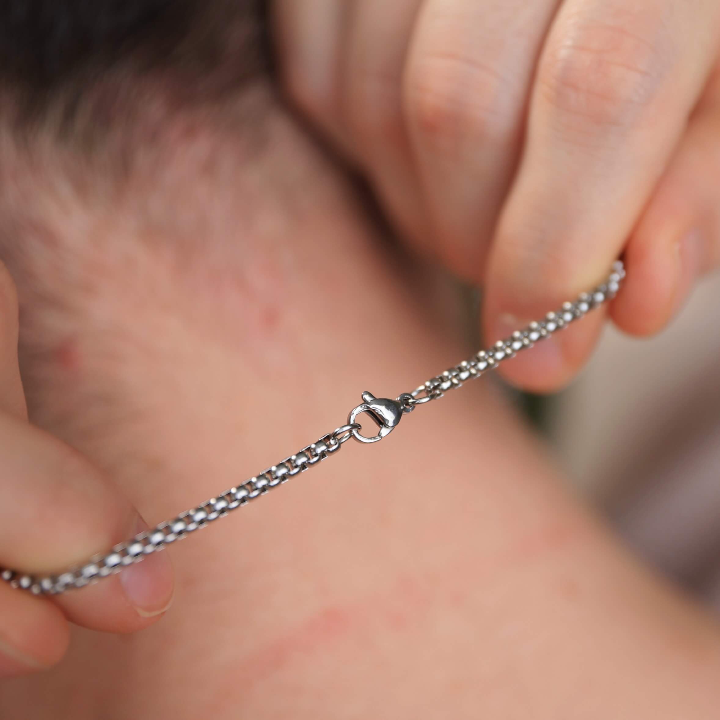 Sprawdź jak naszyjnik będzie na Tobie wyglądał. Przeciętna męska szyja ma 41 cm obwodu.