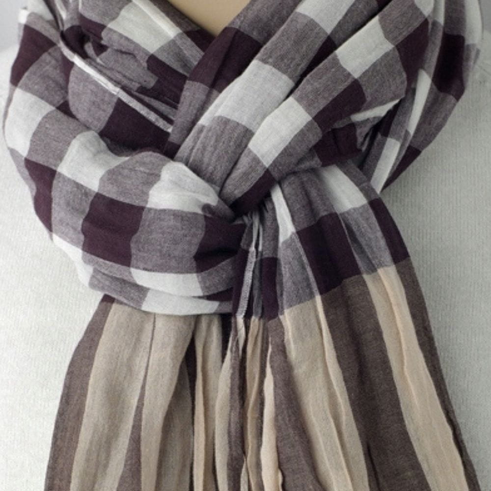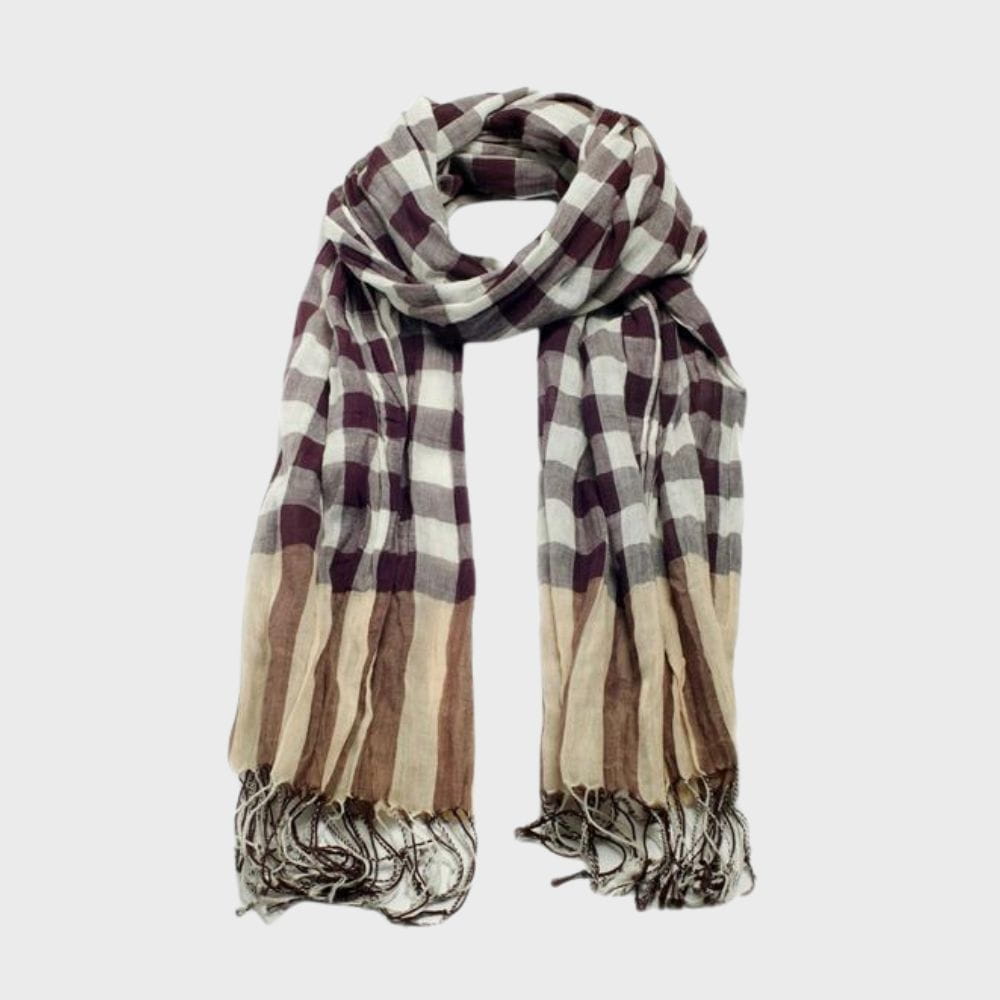 Czasem jeden detal potrafi zmienić cały strój – taki jest właśnie ten bawełniany szalik w kratę. Subtelne odcienie brązu i beżu przywodzą na myśl spacery po parku w chłodniejsze dni, kiedy pierwsze liście zaczynają opadać na ziemię.