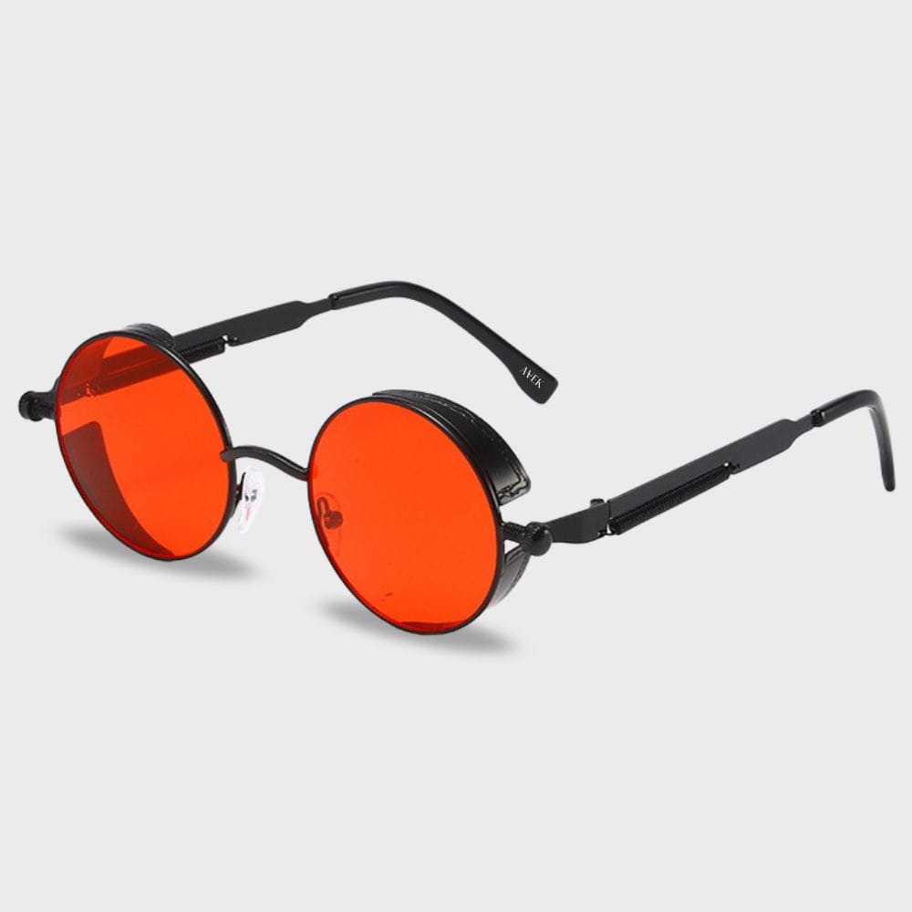 Te okulary przeciwsłoneczne o okrągłym kształcie i intensywnie czerwonych soczewkach to nie lada gratka dla każdego, kto lubi wyróżniać się w tłumie. Ich unikalny design sprawia, że staną się one centralnym punktem każdej stylizacji.