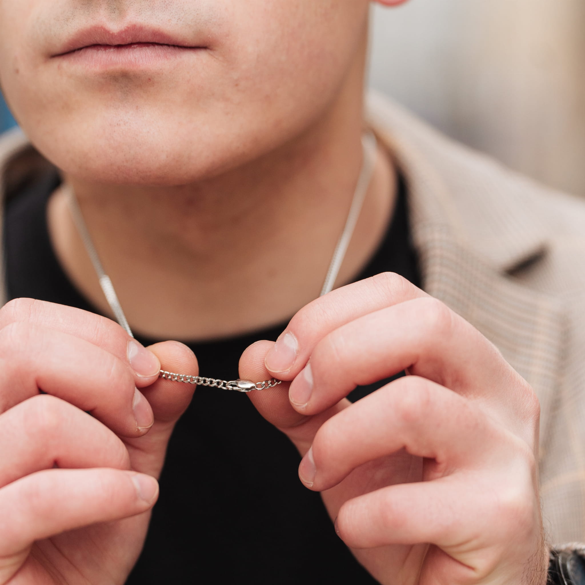 W ramach testu użyj centymentra krawieckiego lub zwykłego sznurka o docelowej długości łańcuszka, aby sprawdzić jaka długość jest Ci potrzebna. Pamiętaj, że zawieszka na łańcuszku sprawia, że wisi on nieco niżej (około 2 cm).