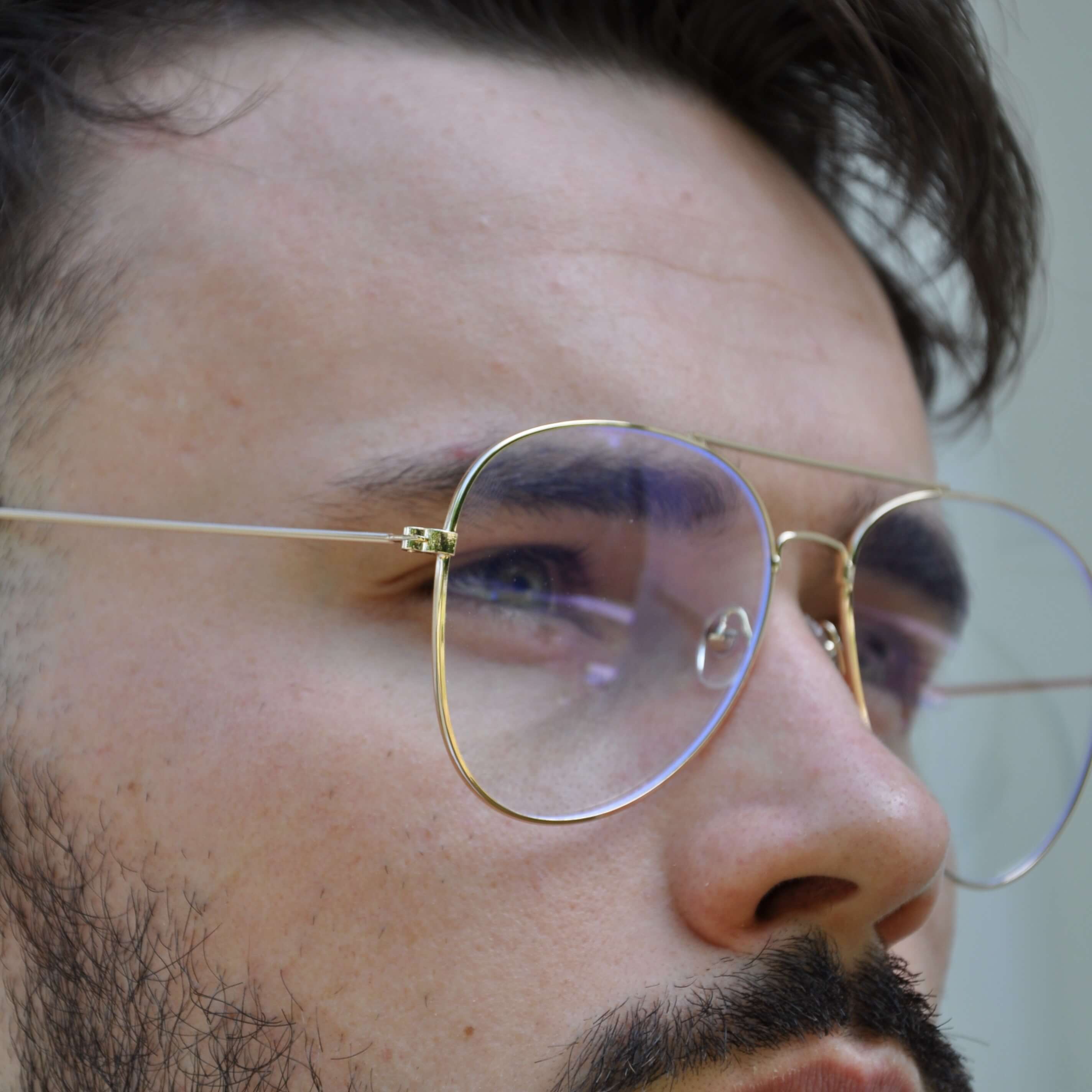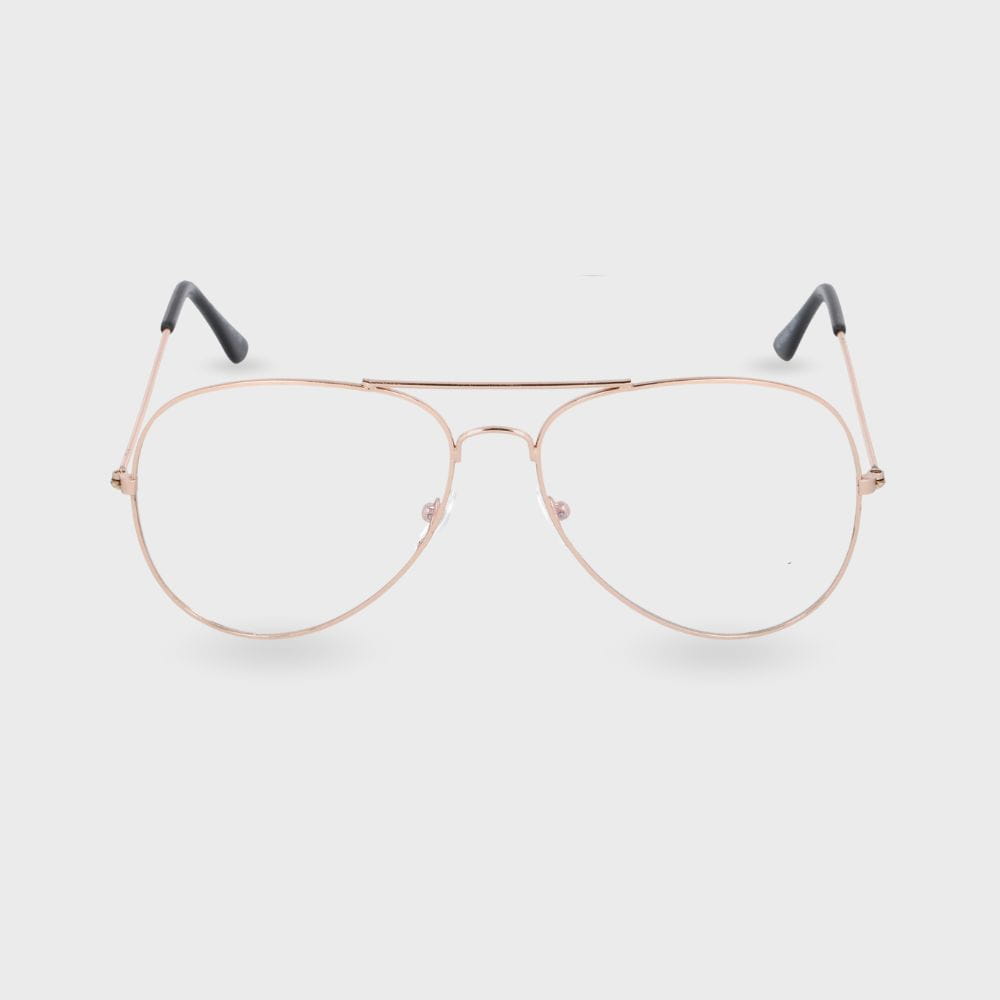 Okulary zerówki aviator ze złocistymi oprawkami i antyrefleksem