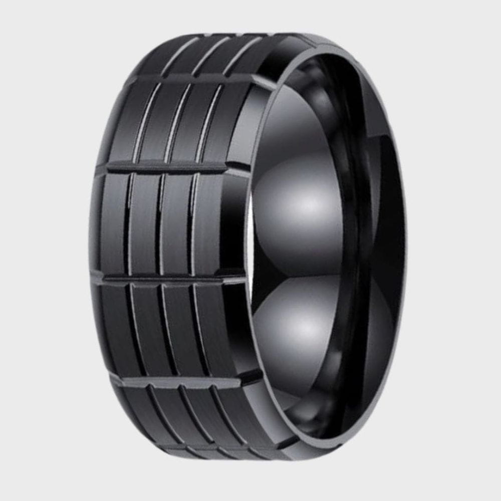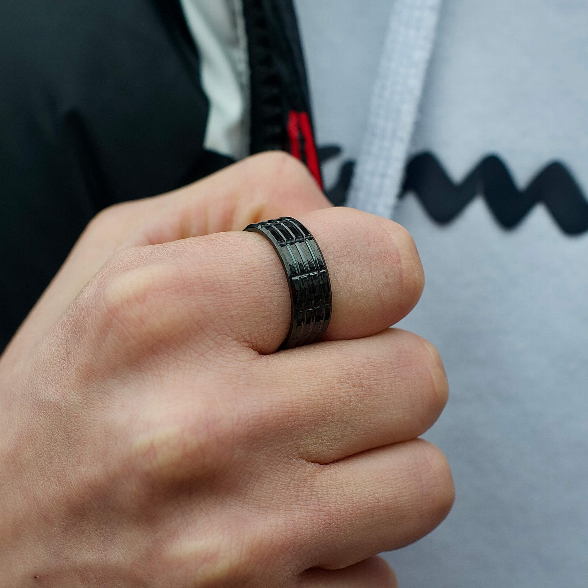 Ten pierścień ze stali szlachetnej to więcej niż tylko dodatek – to subtelne połączenie męskości i elegancji, które dodaje charakteru każdej stylizacji. Jego wyjątkowy design, z wyrazistymi rowkami i matowym wykończeniem, przypomina ślady pozostawione przez koła na drodze życia, symbolizując siłę i determinację.