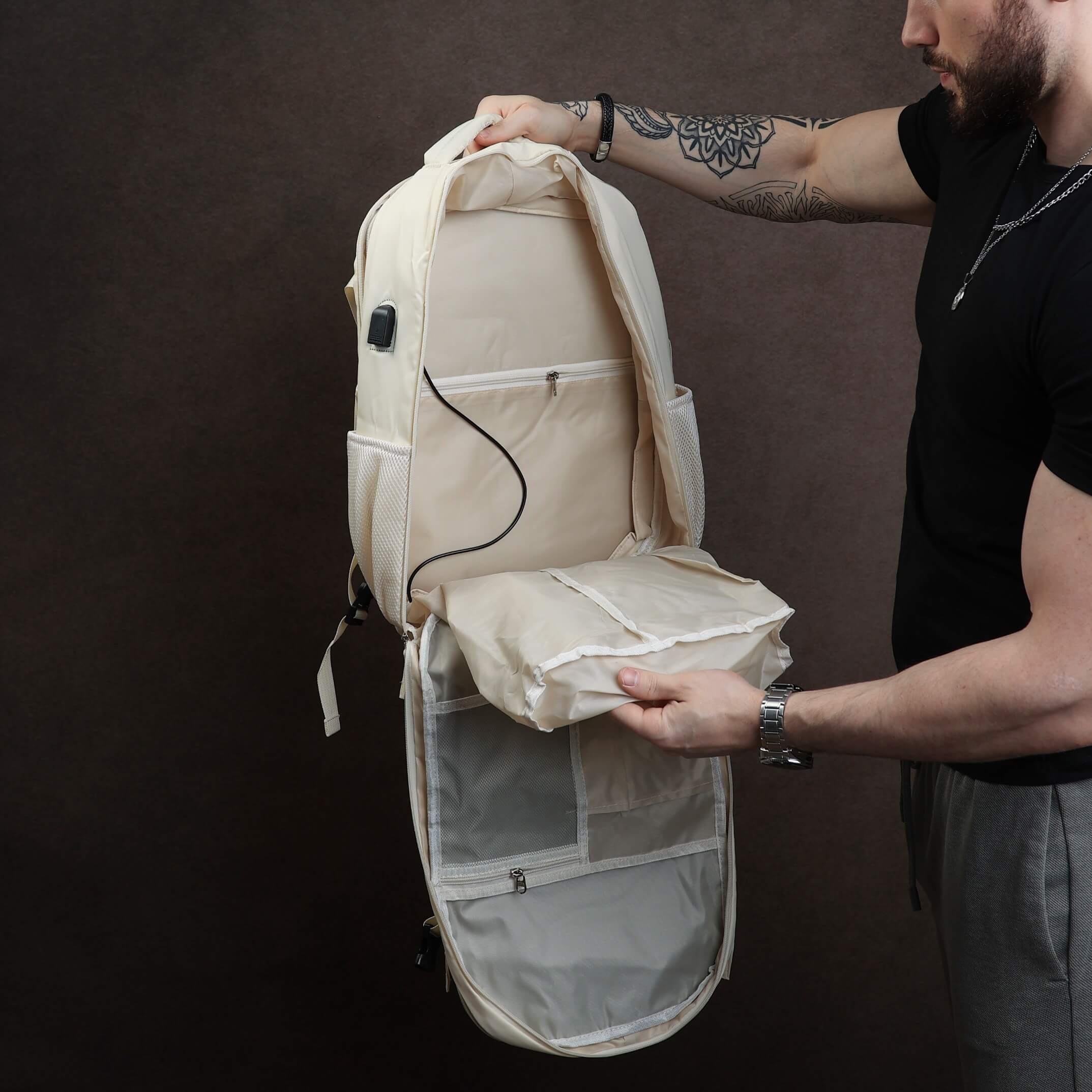 Plecak podróżny poszerzany beżowy