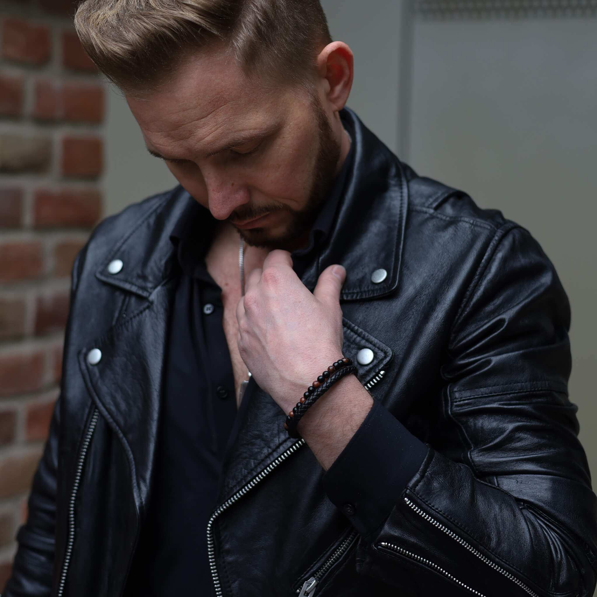 Historia mówi, że podobne koraliki były używane jako talizmany przez myśliwych, którzy wierzyli w ich moc ochronną. Ta męska bransoletka łączy tradycję z nowoczesnością, oferując nie tylko styl, ale również odrobinę dzikiej natury.