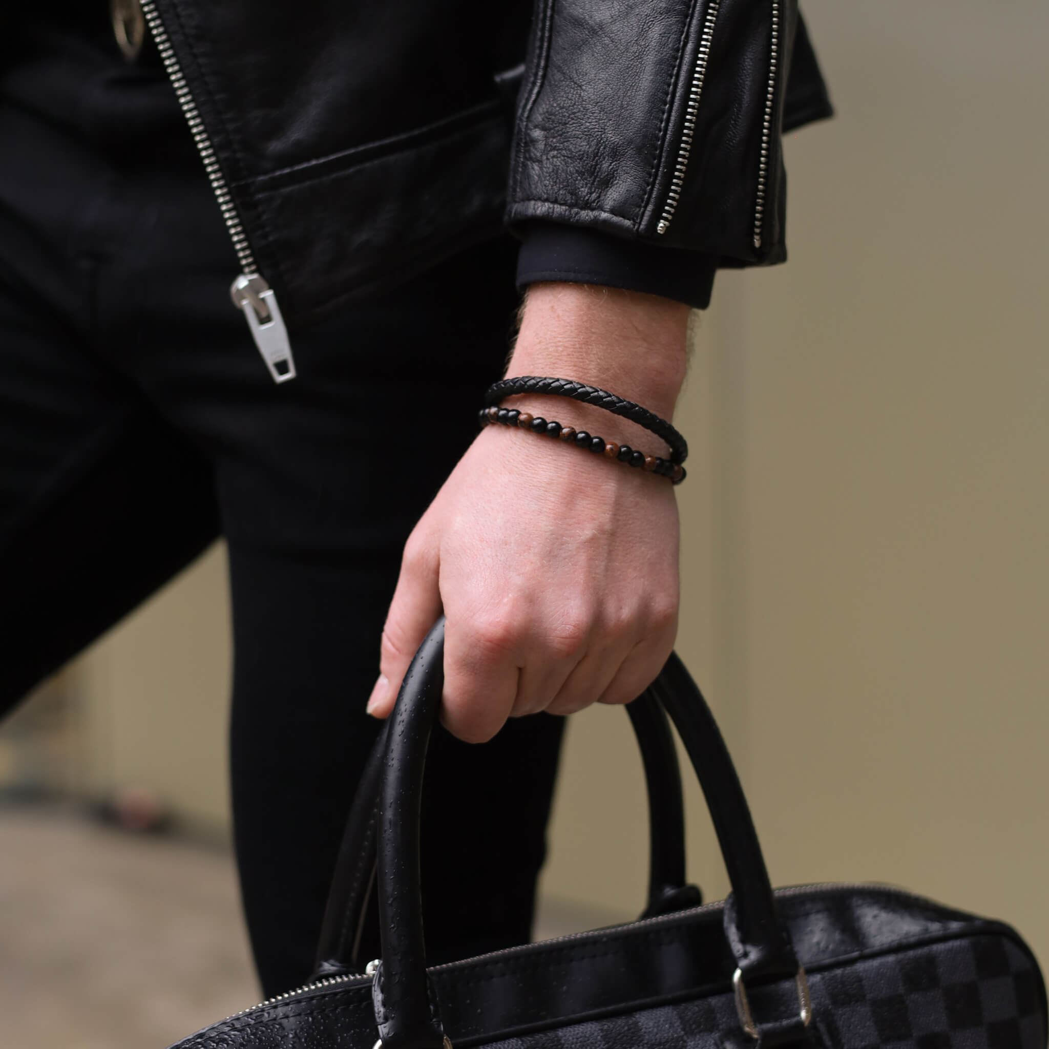 | Wszystkie materiały | Skóra, Stal szlachetna, Kamień onyks, Kamień tiger eye |