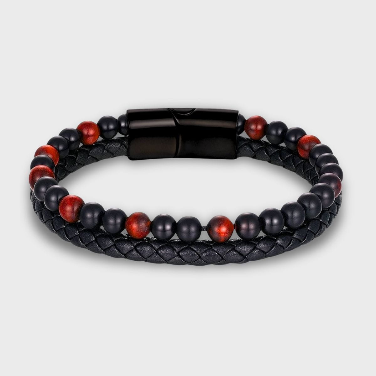 Skórzana bransoletka z koralikami czerwonego tygrysiego oka
