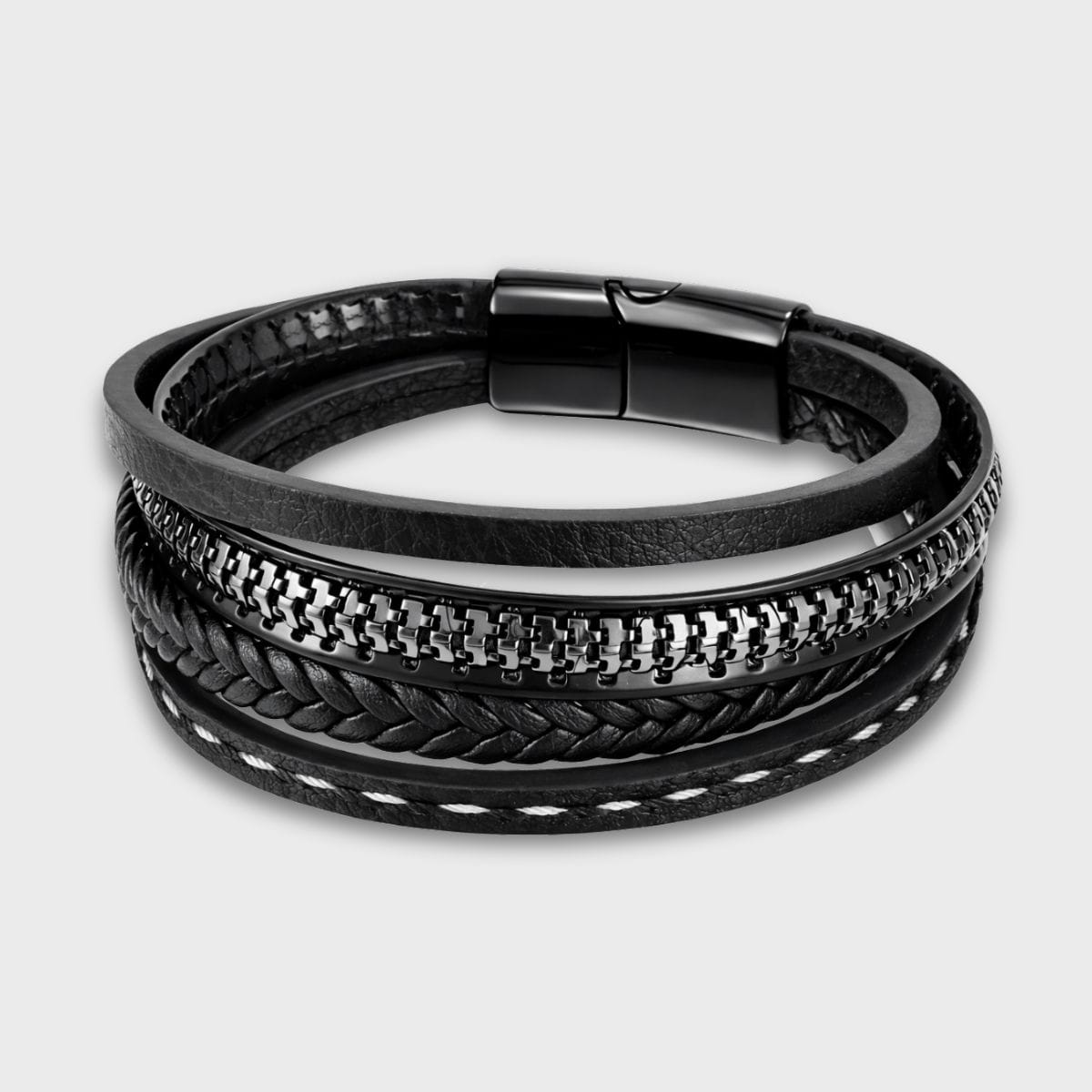 Skórzana bransoletka z motywem suwaka i stalowym zapięciem