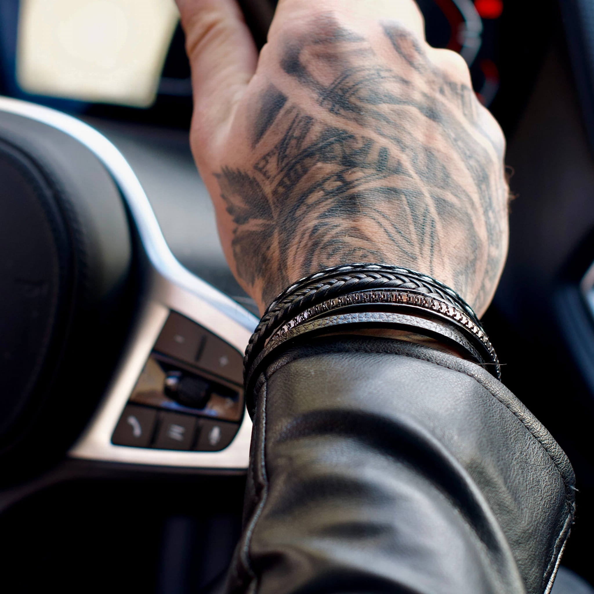 Ta bransoletka skórzana jest niczym echa odległych opowieści; każde plecenie i każdy wzór wyryty na jej powierzchni wydają się szeptać historie minionej ery. Subtelne detale, takie jak zaplątane skórzane paski i delikatne, wytłoczone wzory, dodają charakteru i głębi.