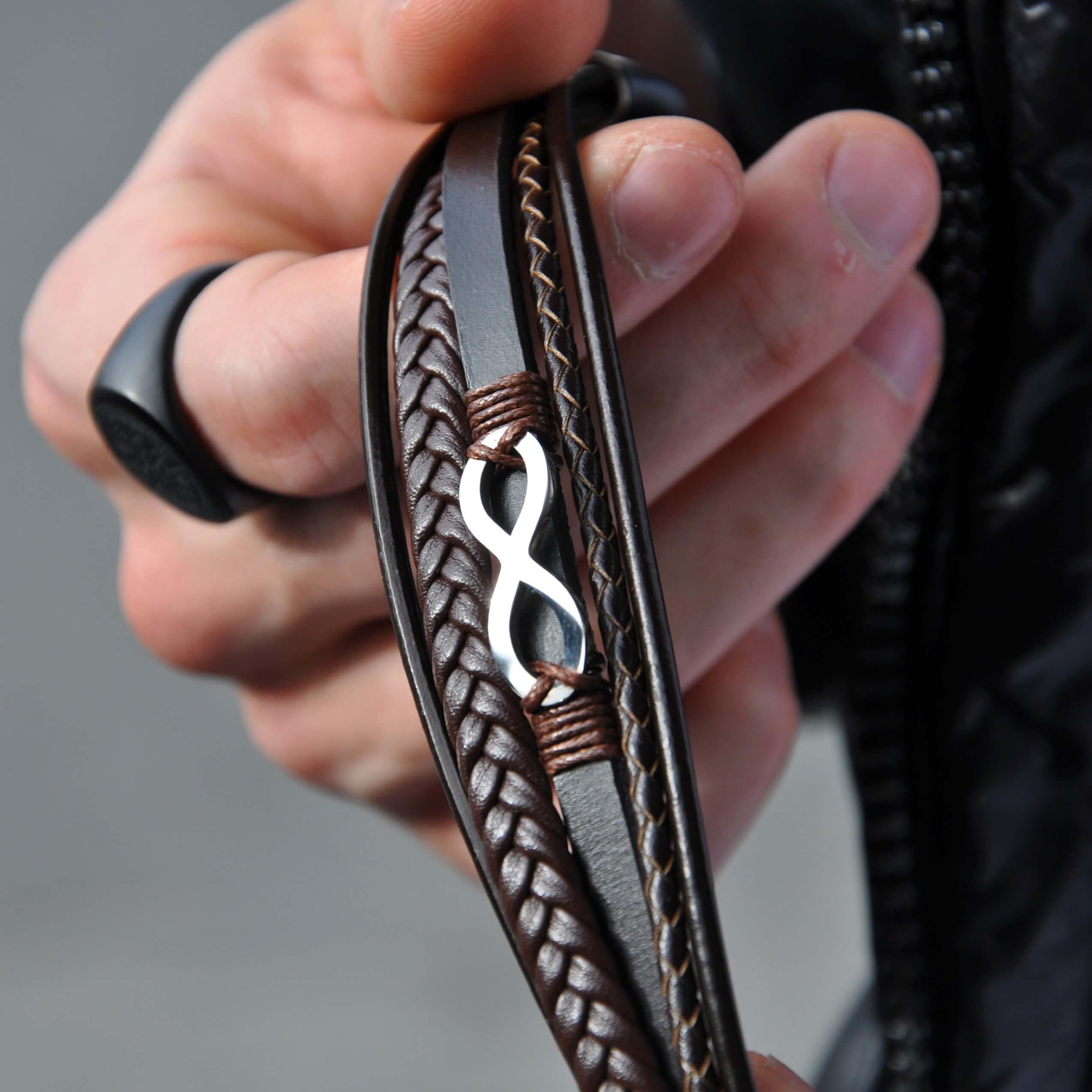 Skórzana bransoletka z srebrnym znakiem nieskończoności