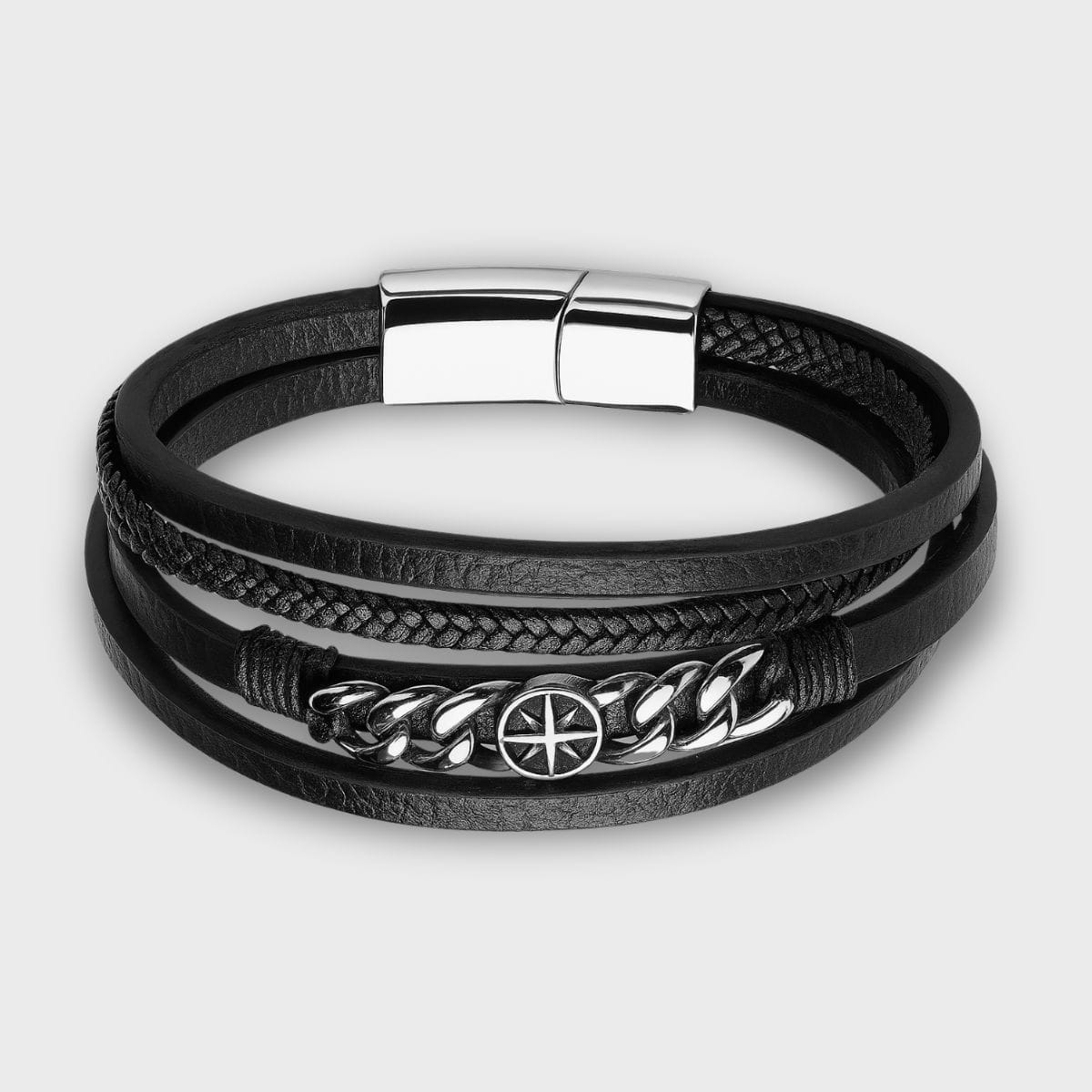 Skórzana czarna bransoletka ze stalową gwiazdą