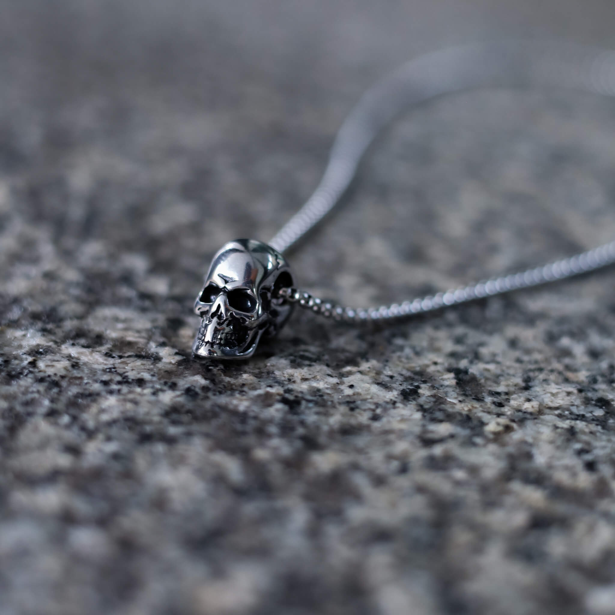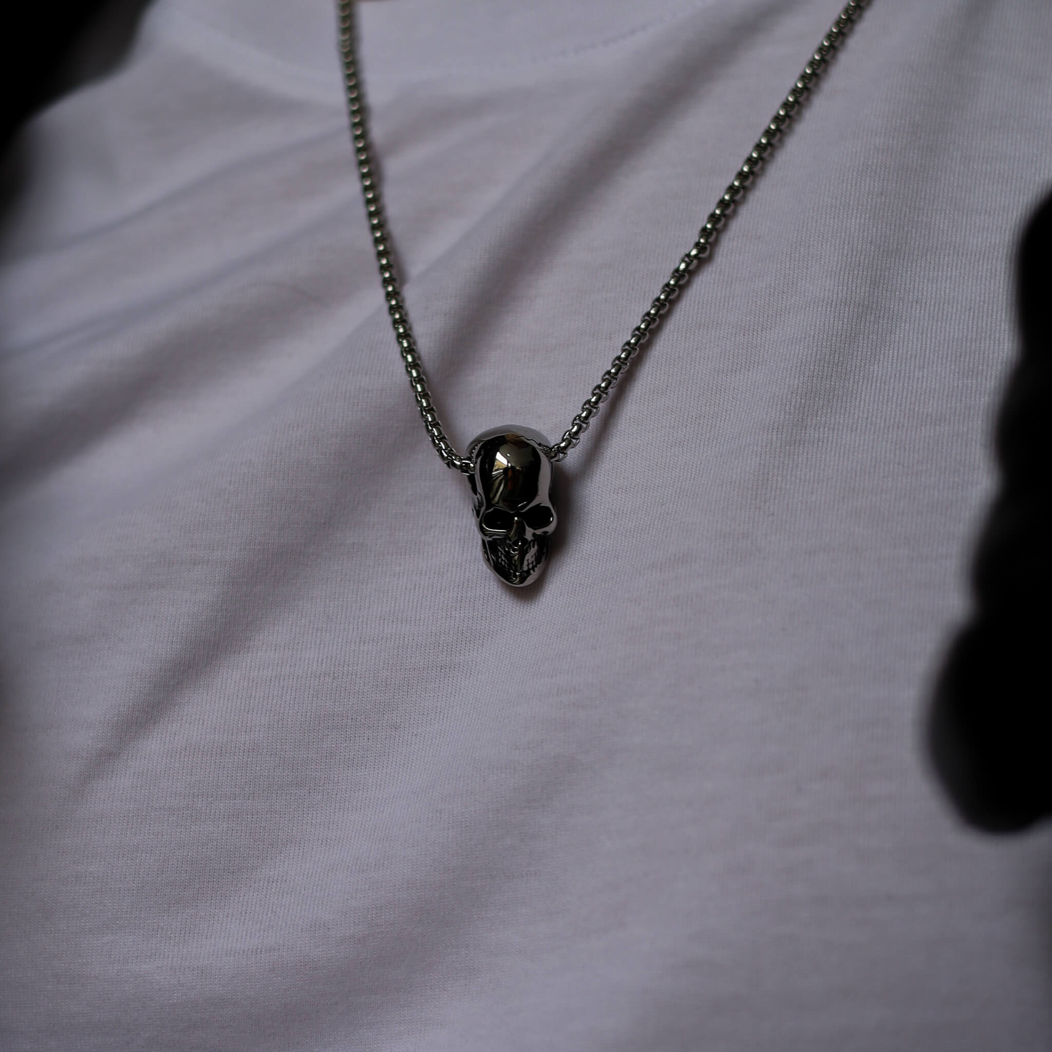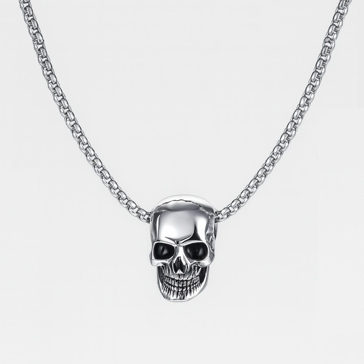 Srebrzysty stalowy naszyjnik z czaszką