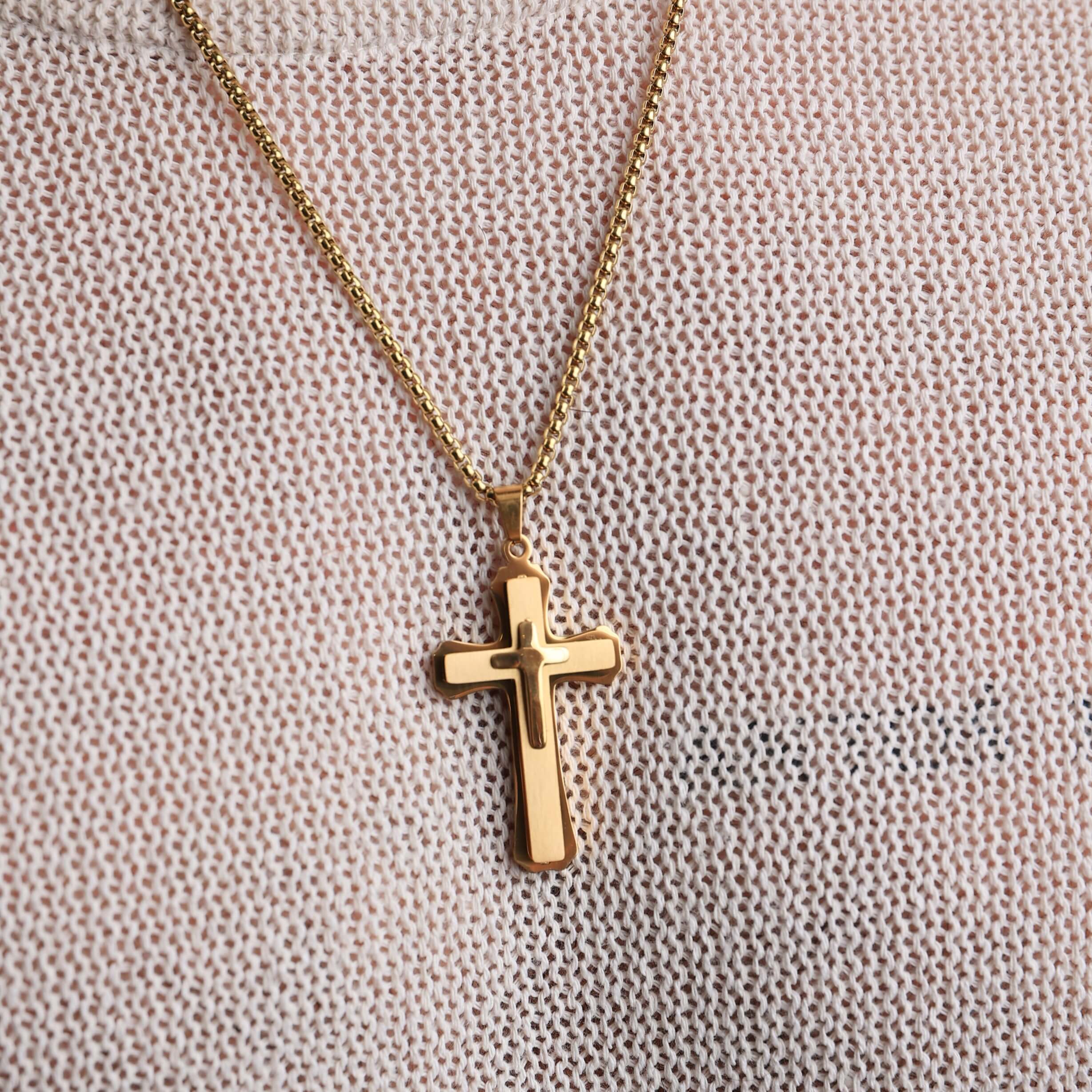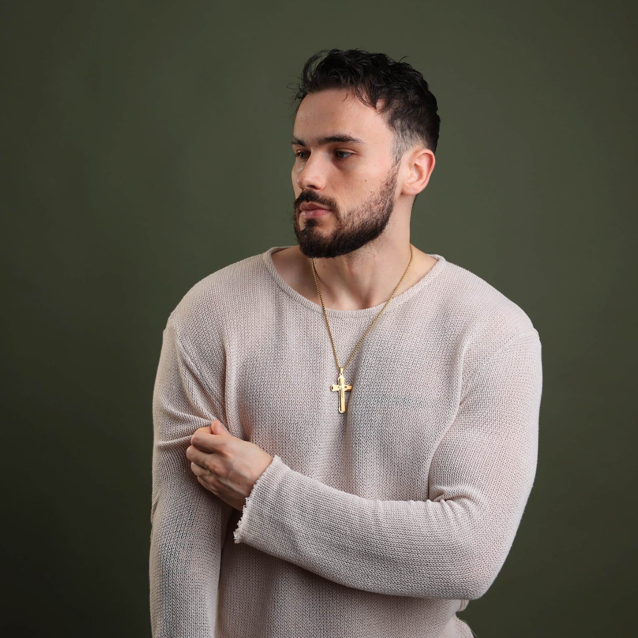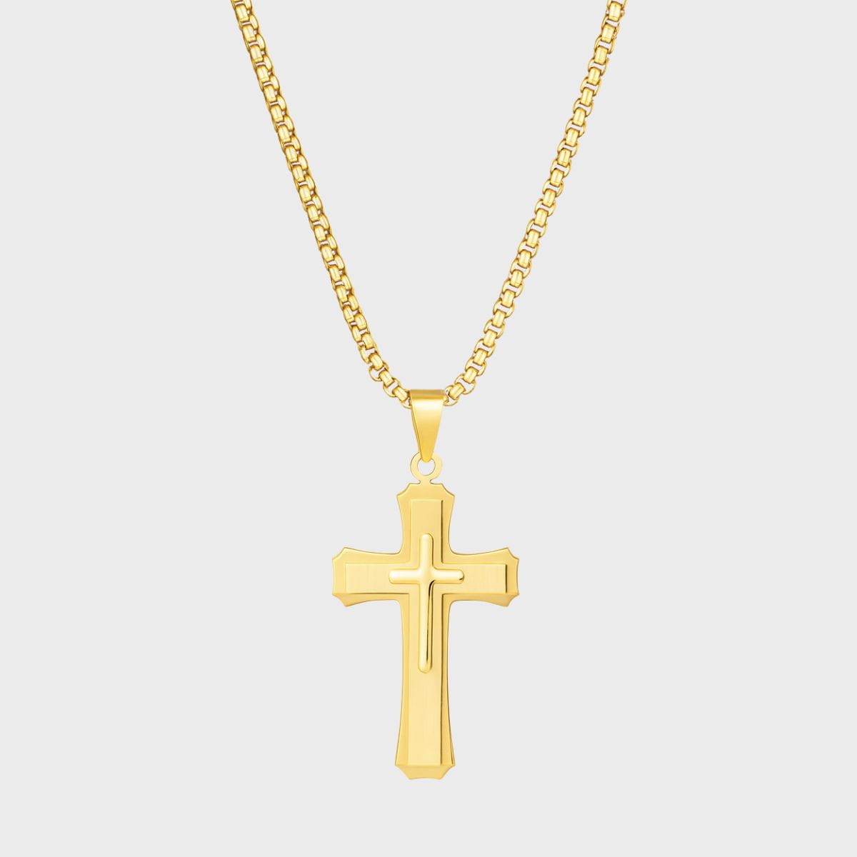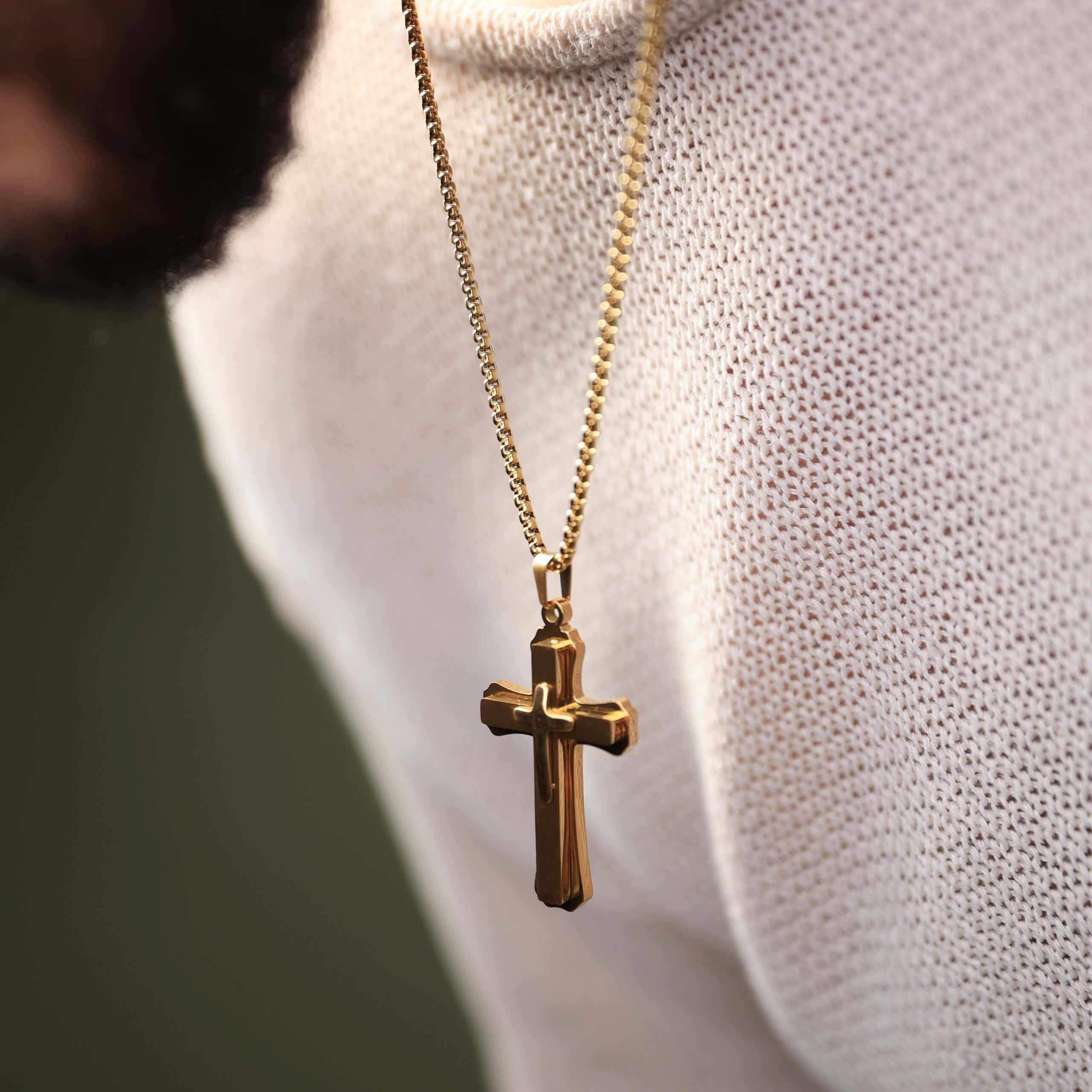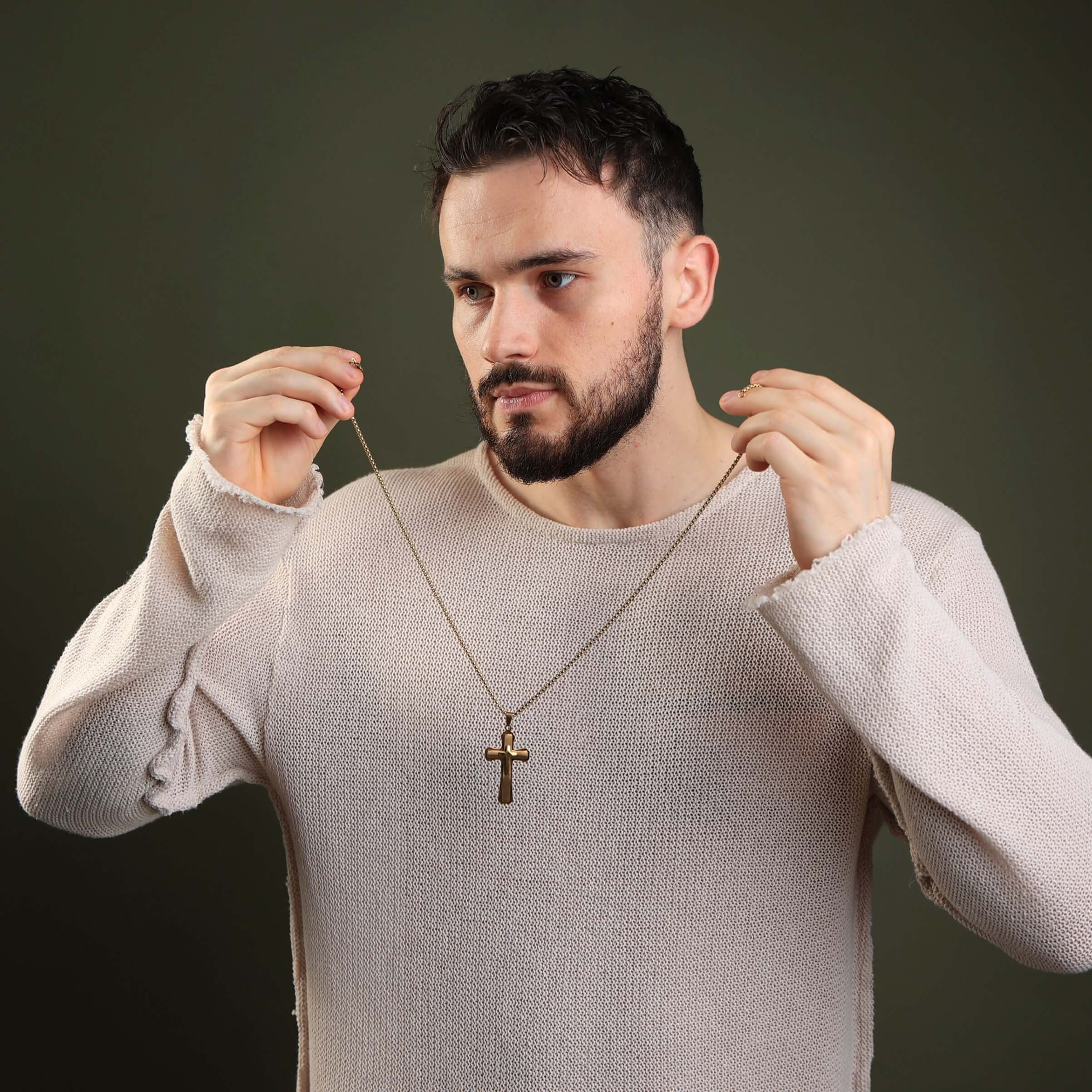 Złoto od zawsze symbolizowało boskość, siłę i nieprzemijającą wartość. Ten naszyjnik, z podwójnym krzyżem w eleganckiej formie, niesie przesłanie wiary, lojalności i trwałości, której nie zniszczy czas.