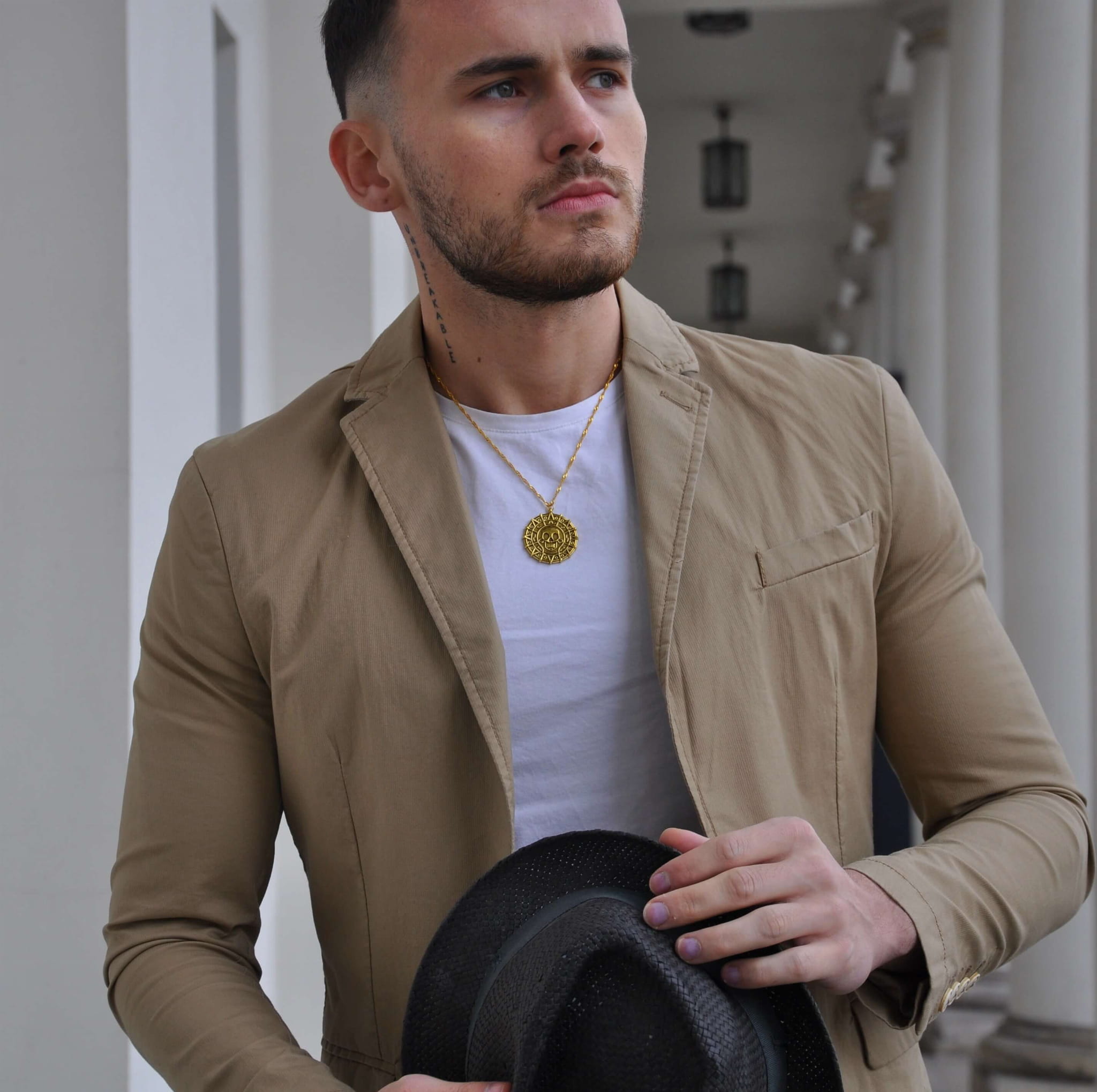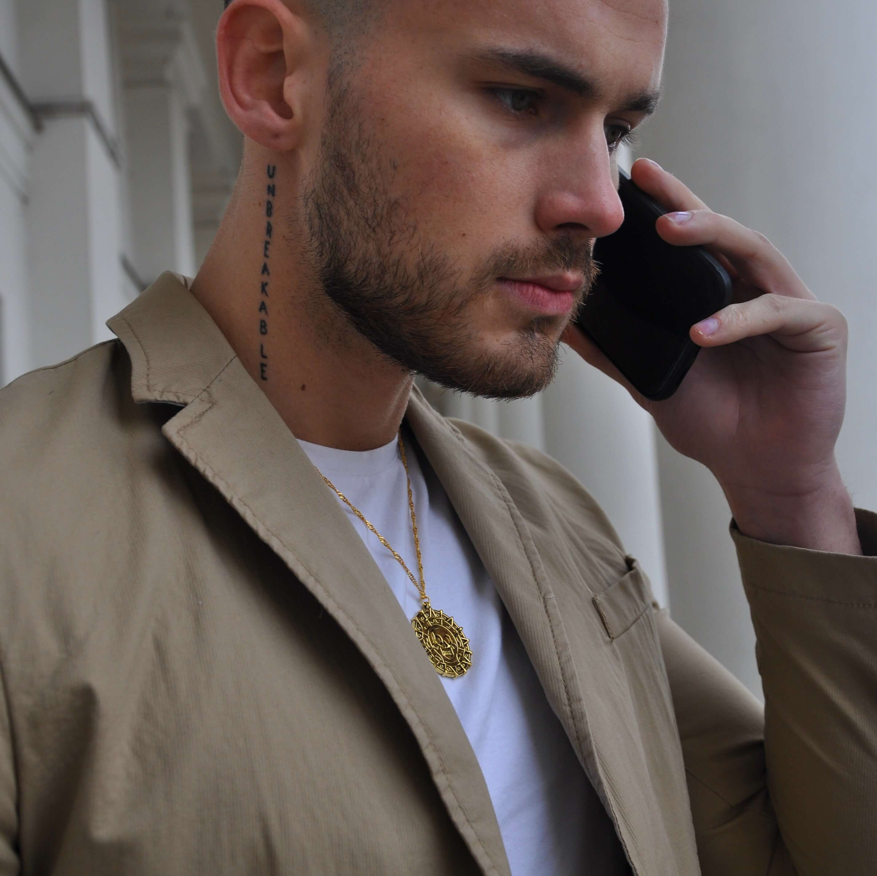 Ten naszyjnik ze stali szlachetnej w złotym odcieniu z motywem czaszki przypomina o starożytnych cywilizacjach, które wierzyły w magię i moc amuletów. Złożone wzory otaczające czaszkę to hołd dla mistycznych symboli, które miały chronić i przyciągać dobre energie.