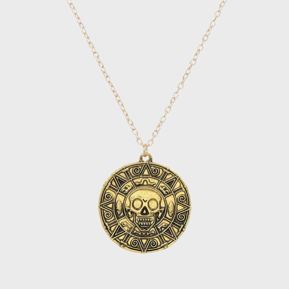 Złocisty piracki naszyjnik ze stali szlachetnej z czaszką