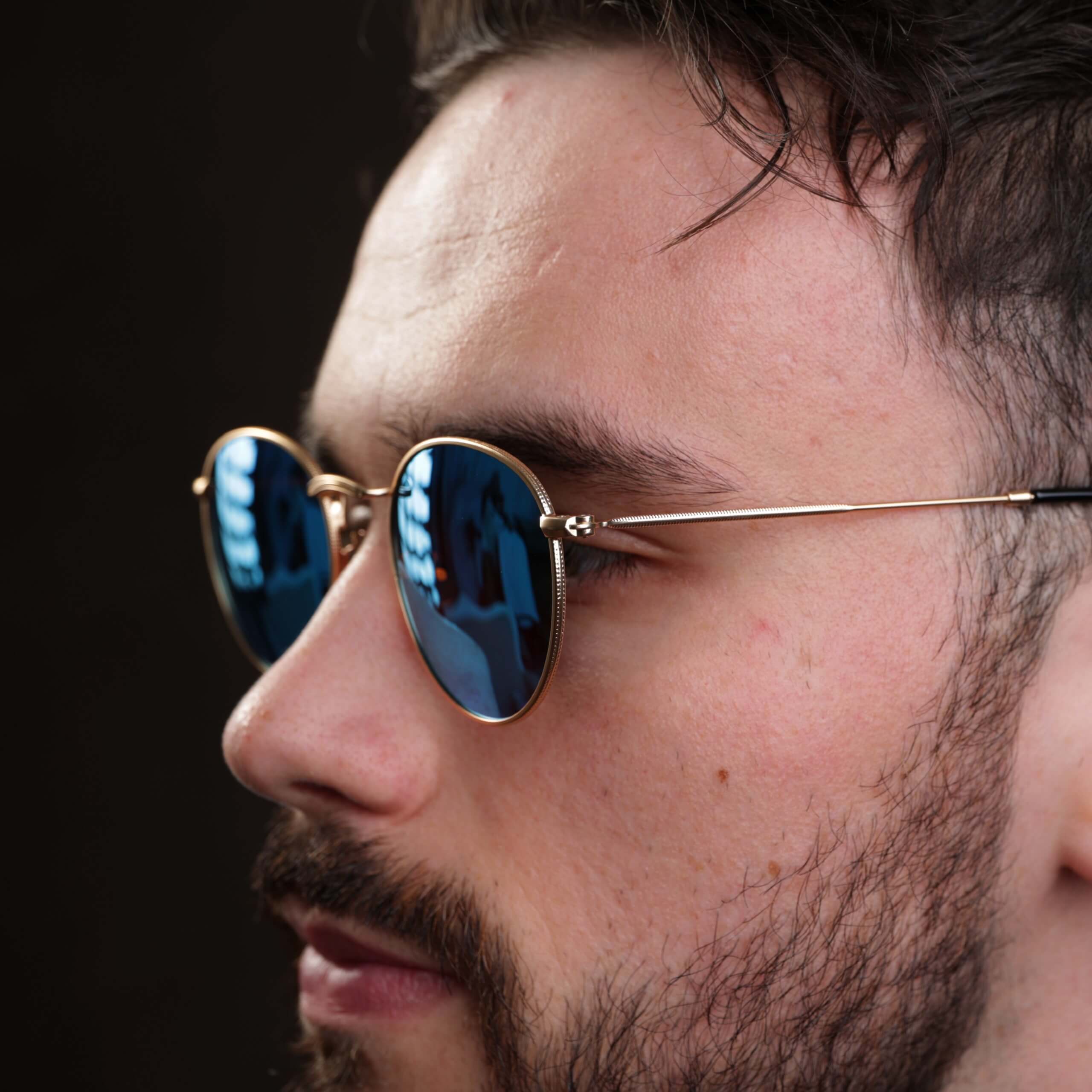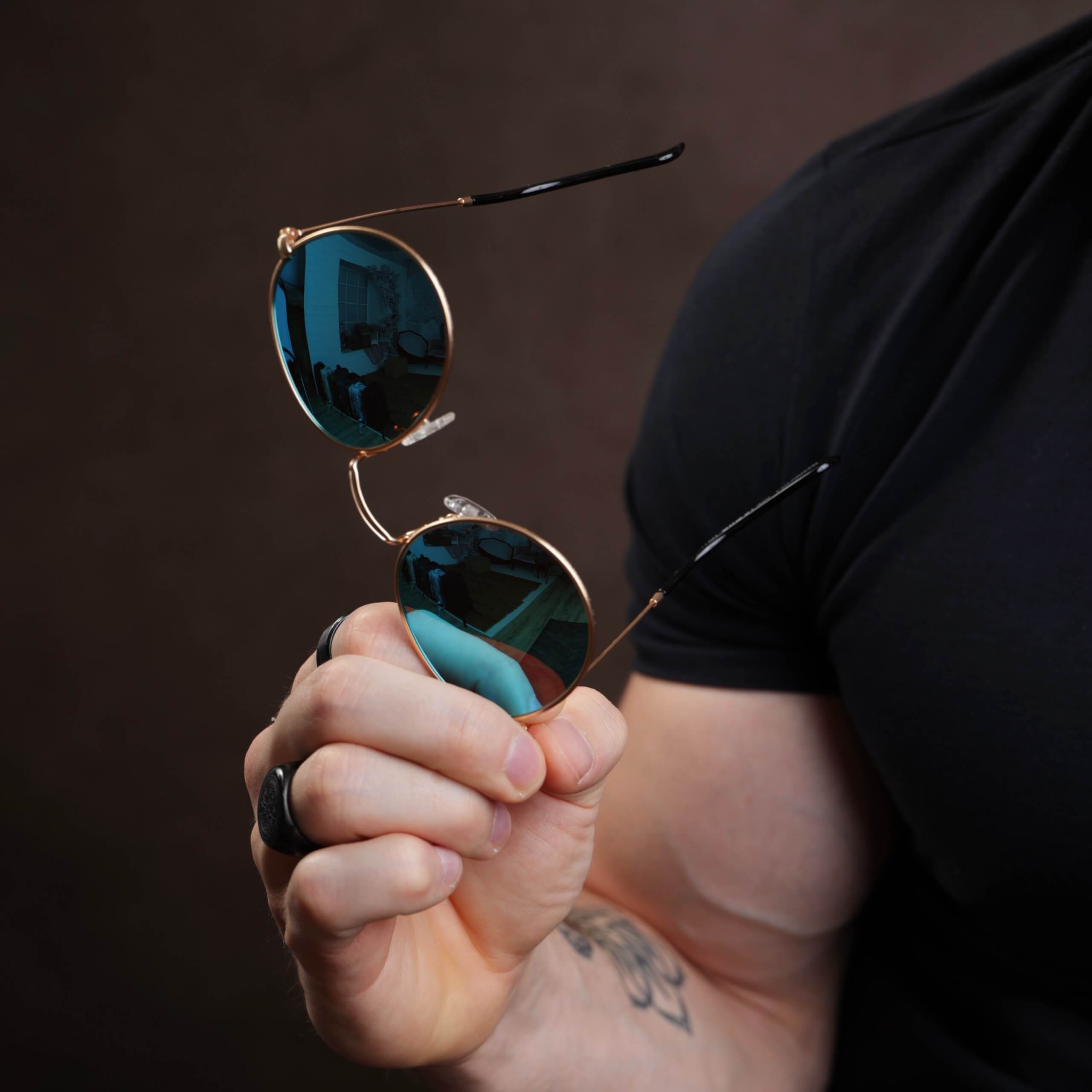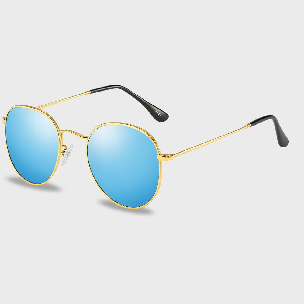 Złoto-niebieskie okulary przeciwsłoneczne okrągłe