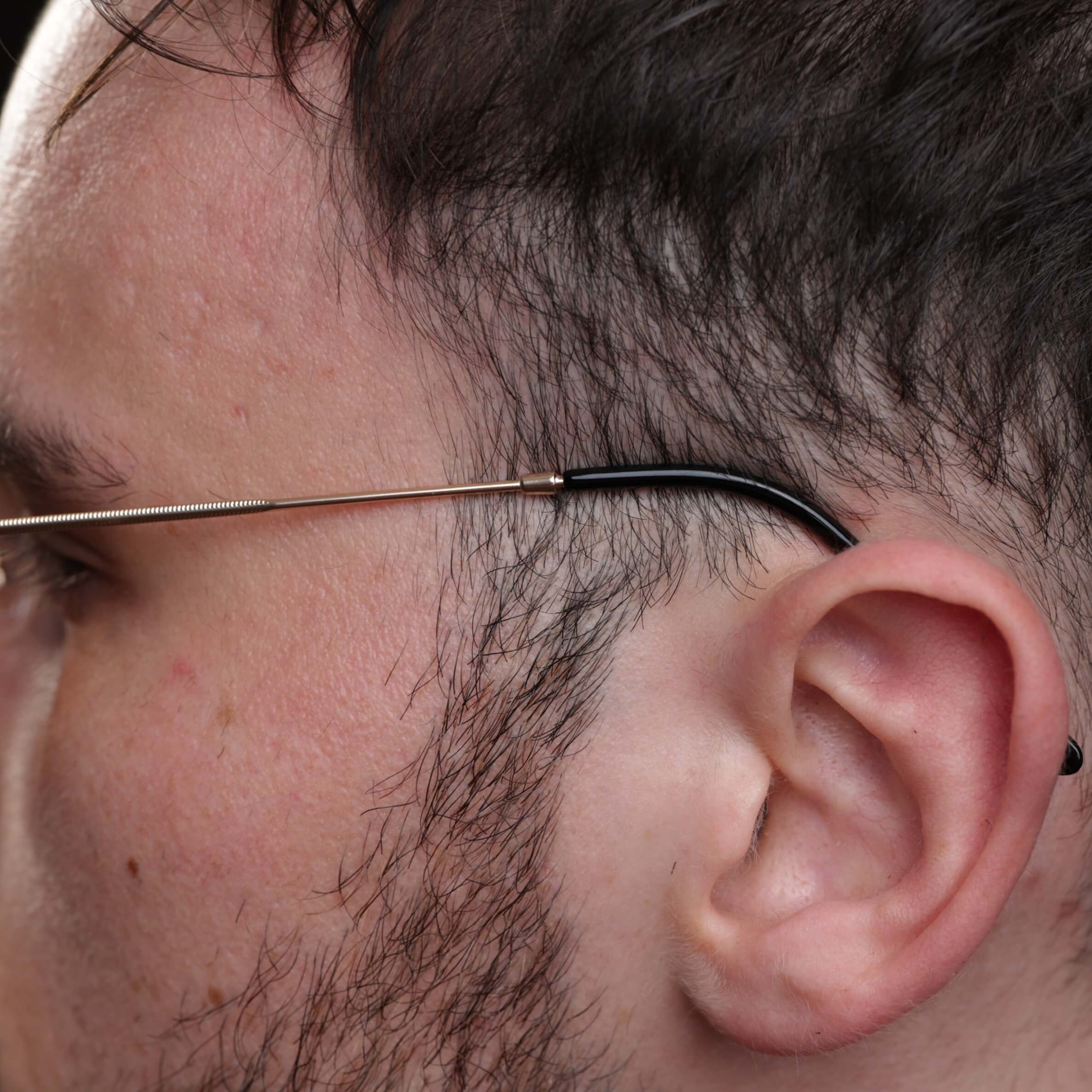 Zmierz odległość między twoim uchem a końcem kości skroniowej. To jest przybliżona długość zausznika, którą będziesz potrzebować.