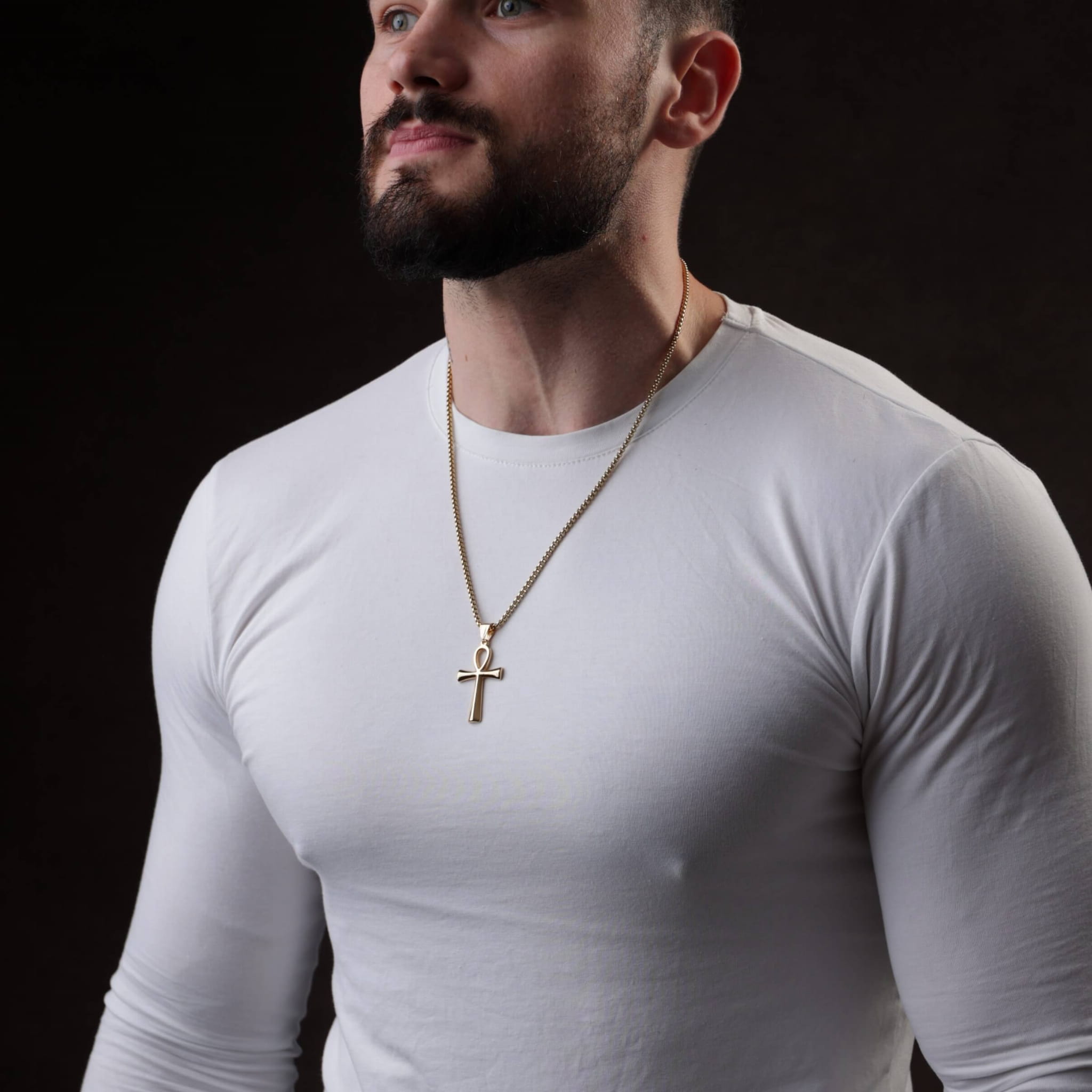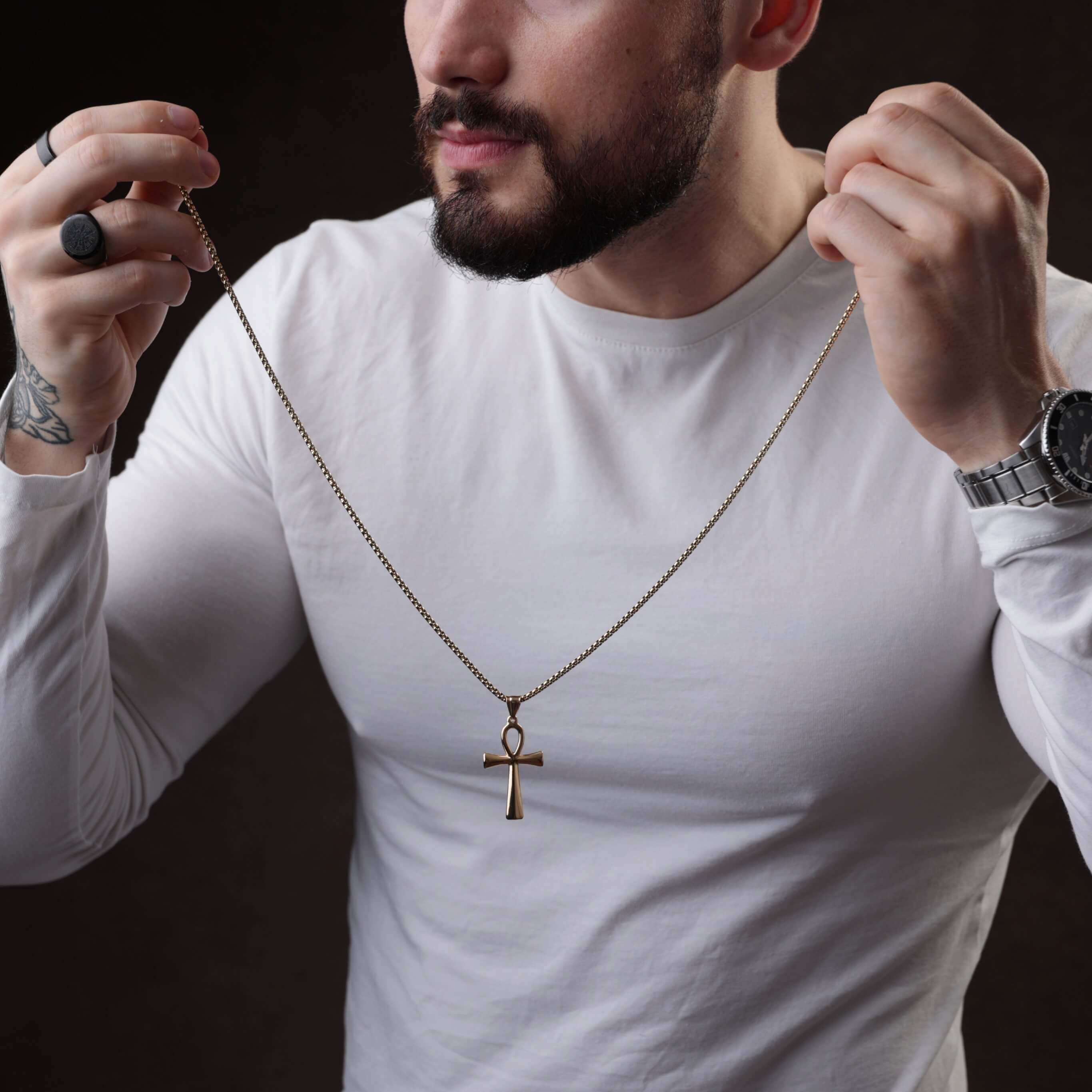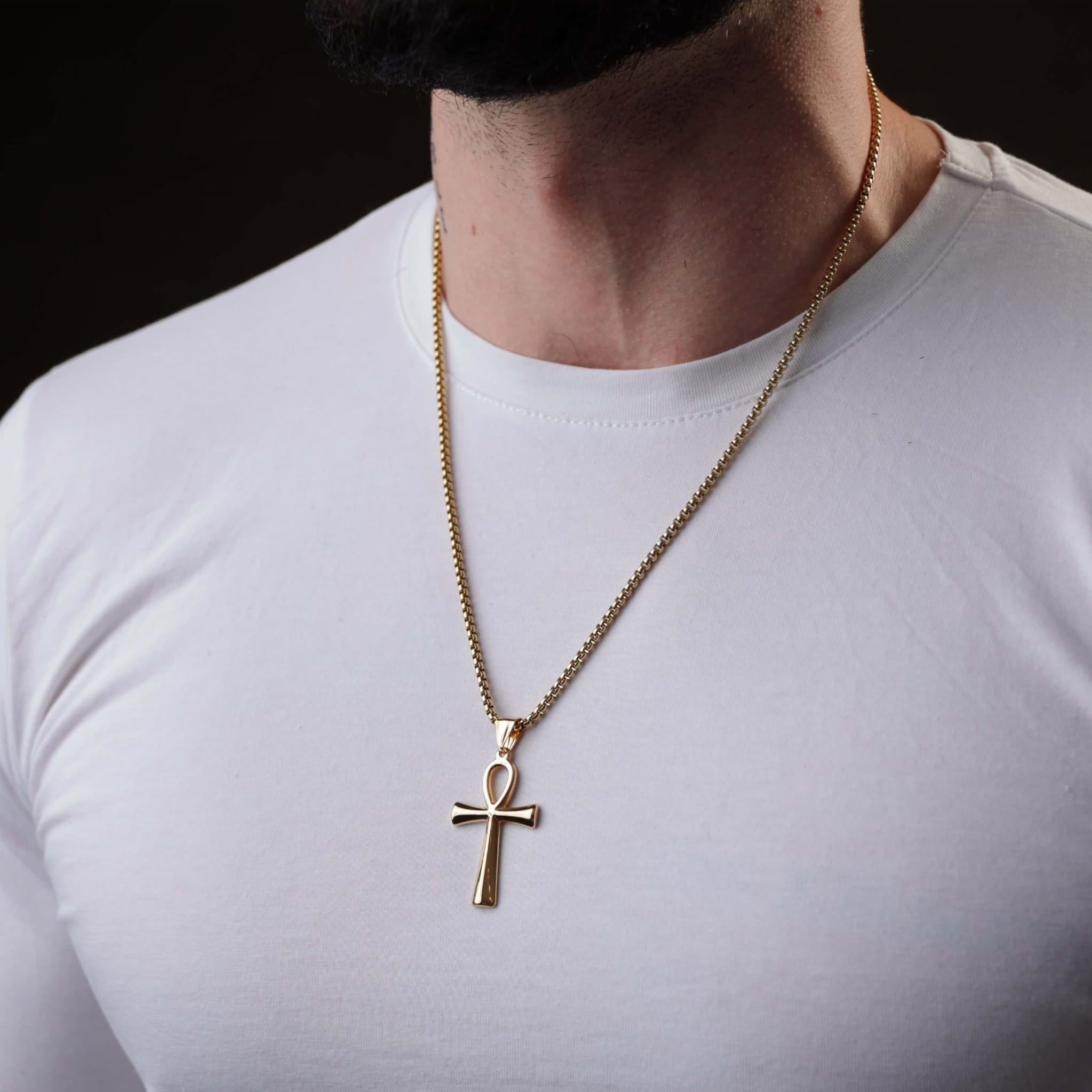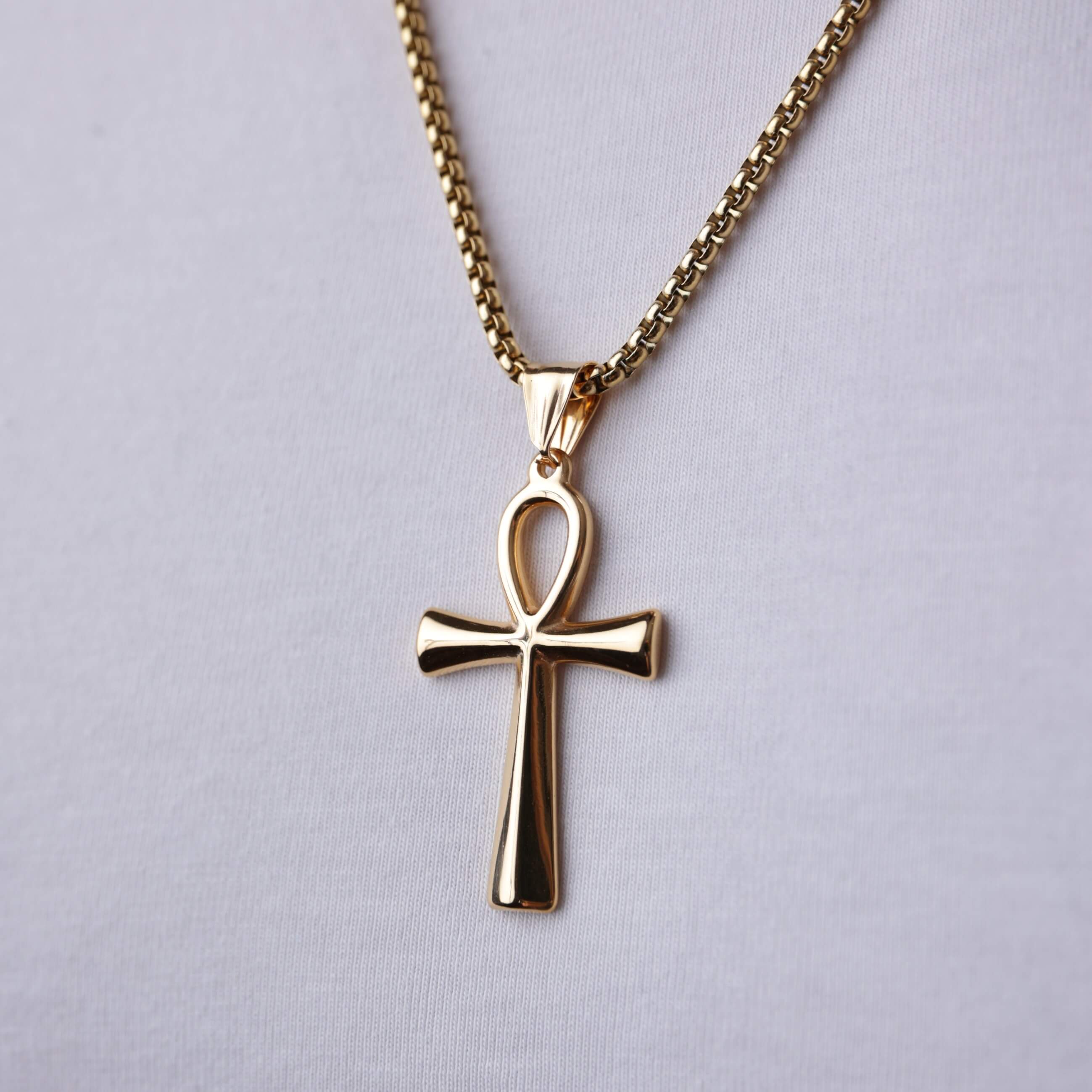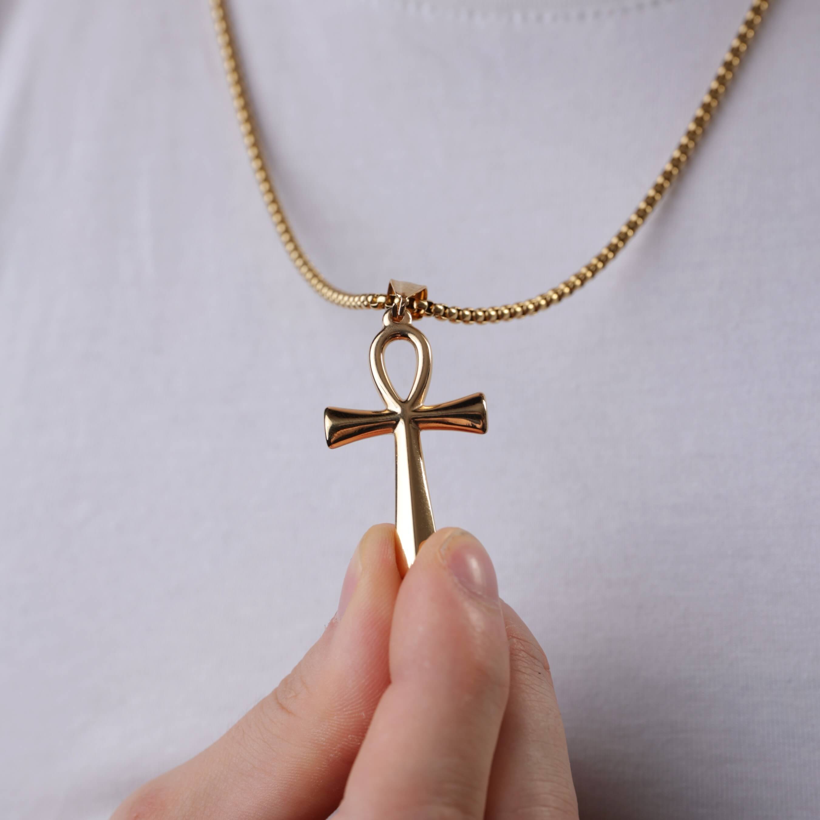 Złoty naszyjnik męski z egipskim symbolem Ankh