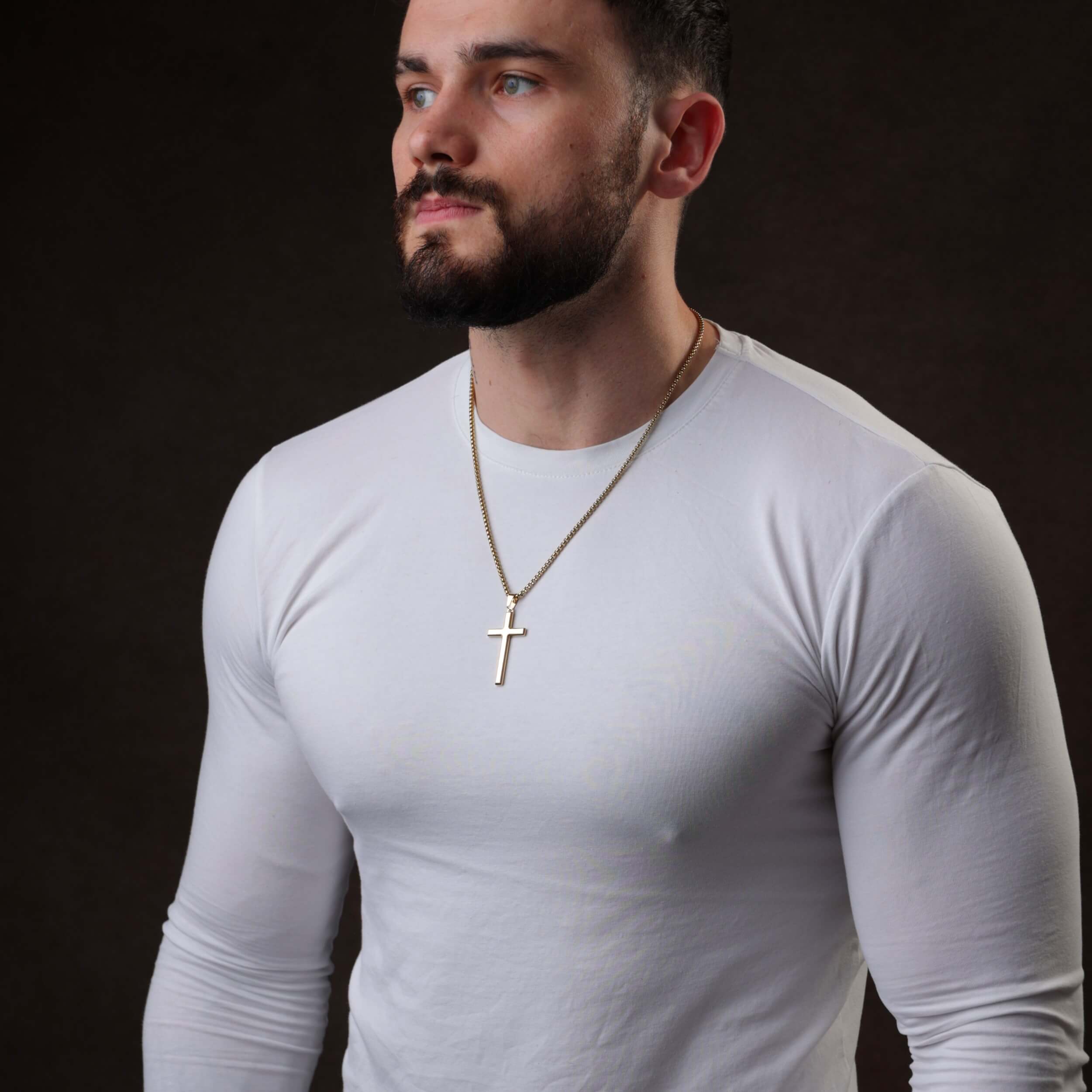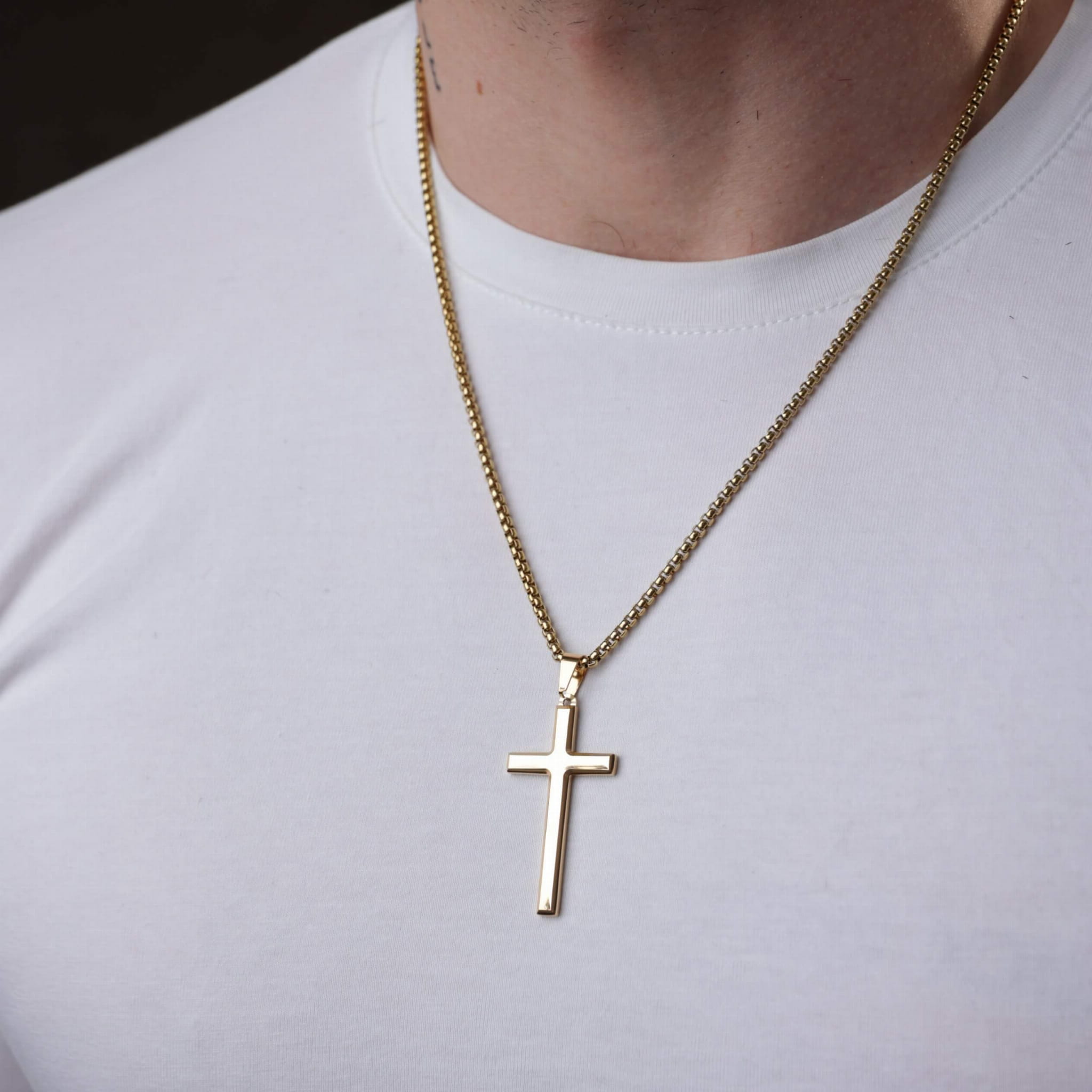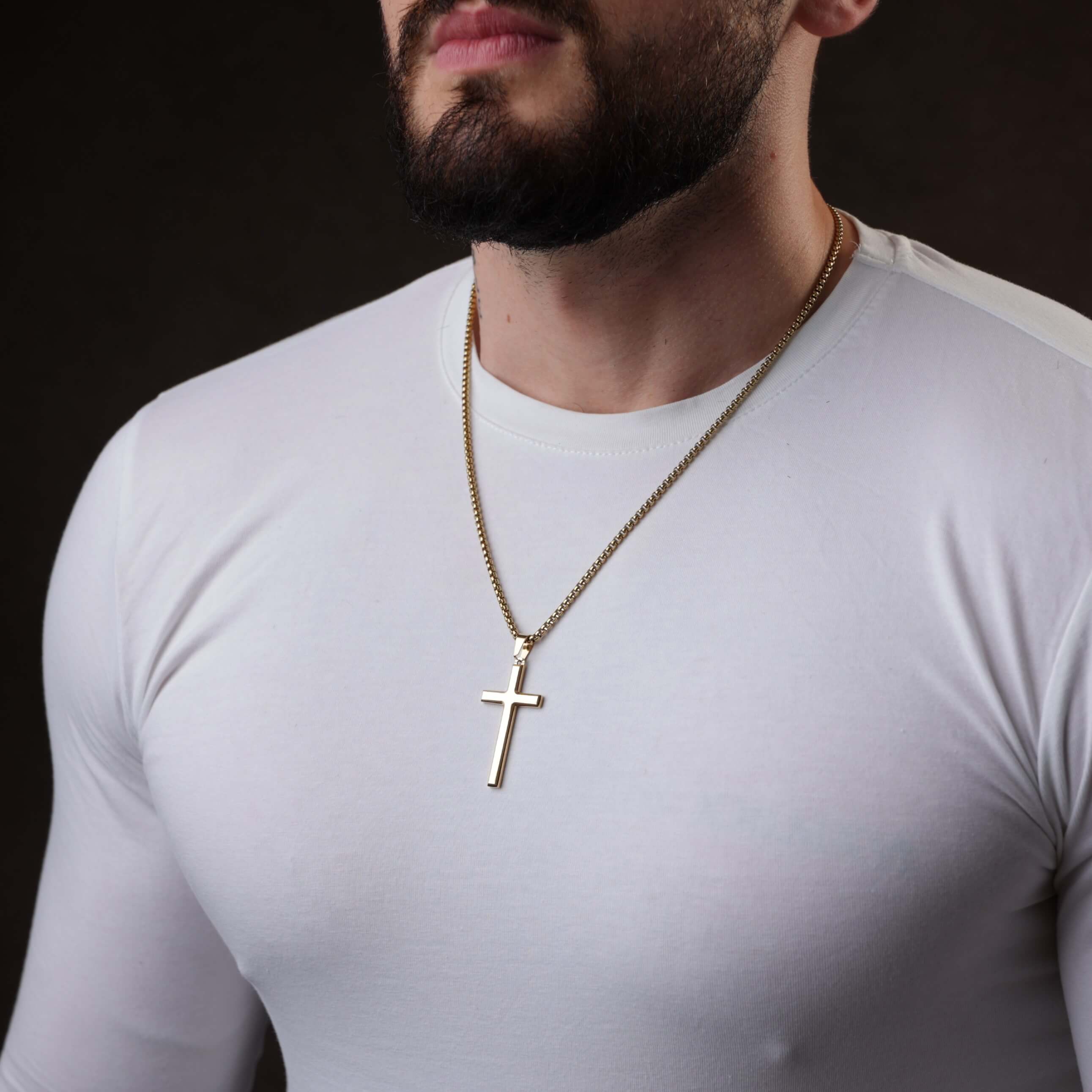 Złoty połysk naszyjnika symbolizuje światło – towarzysza w ciemności, znak nadziei i duchowej obecności. To biżuteria dla mężczyzny, który nie musi krzyczeć, by być słyszanym. Dla tego, który wybiera minimalizm z przesłaniem.