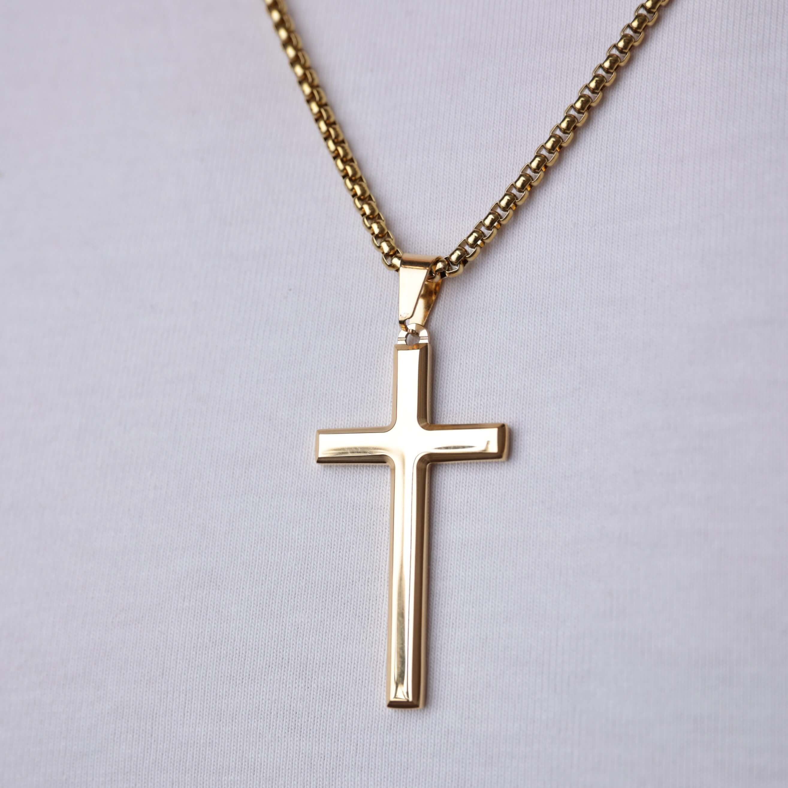 Złoty naszyjnik męski ze stali z krzyżem